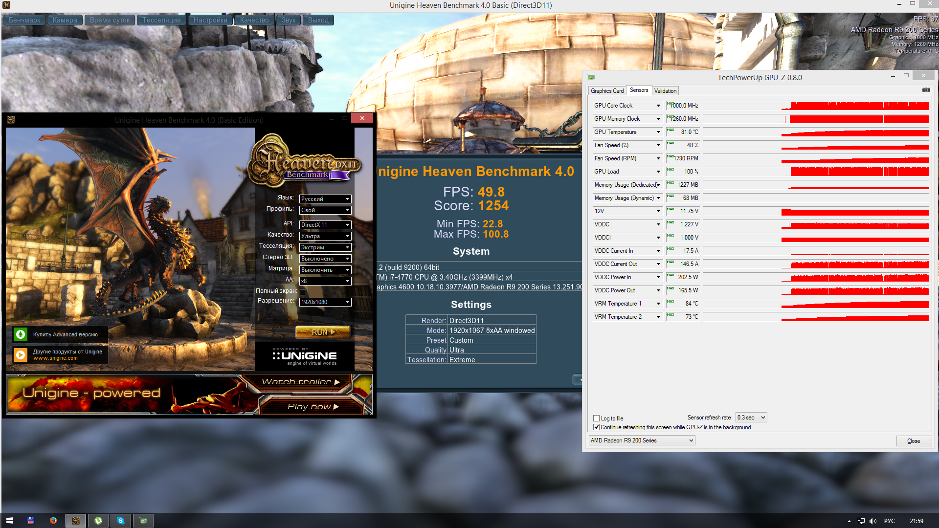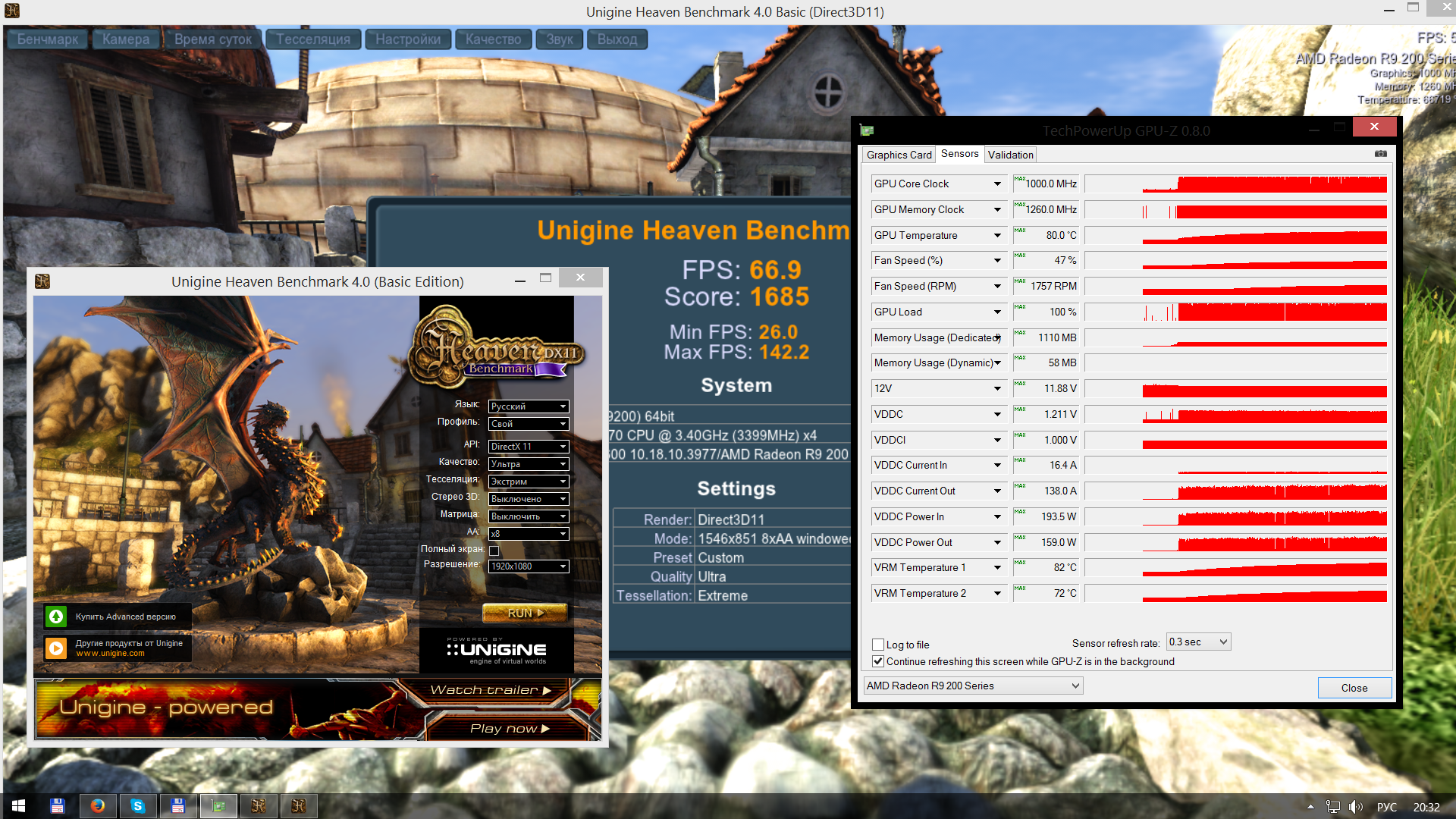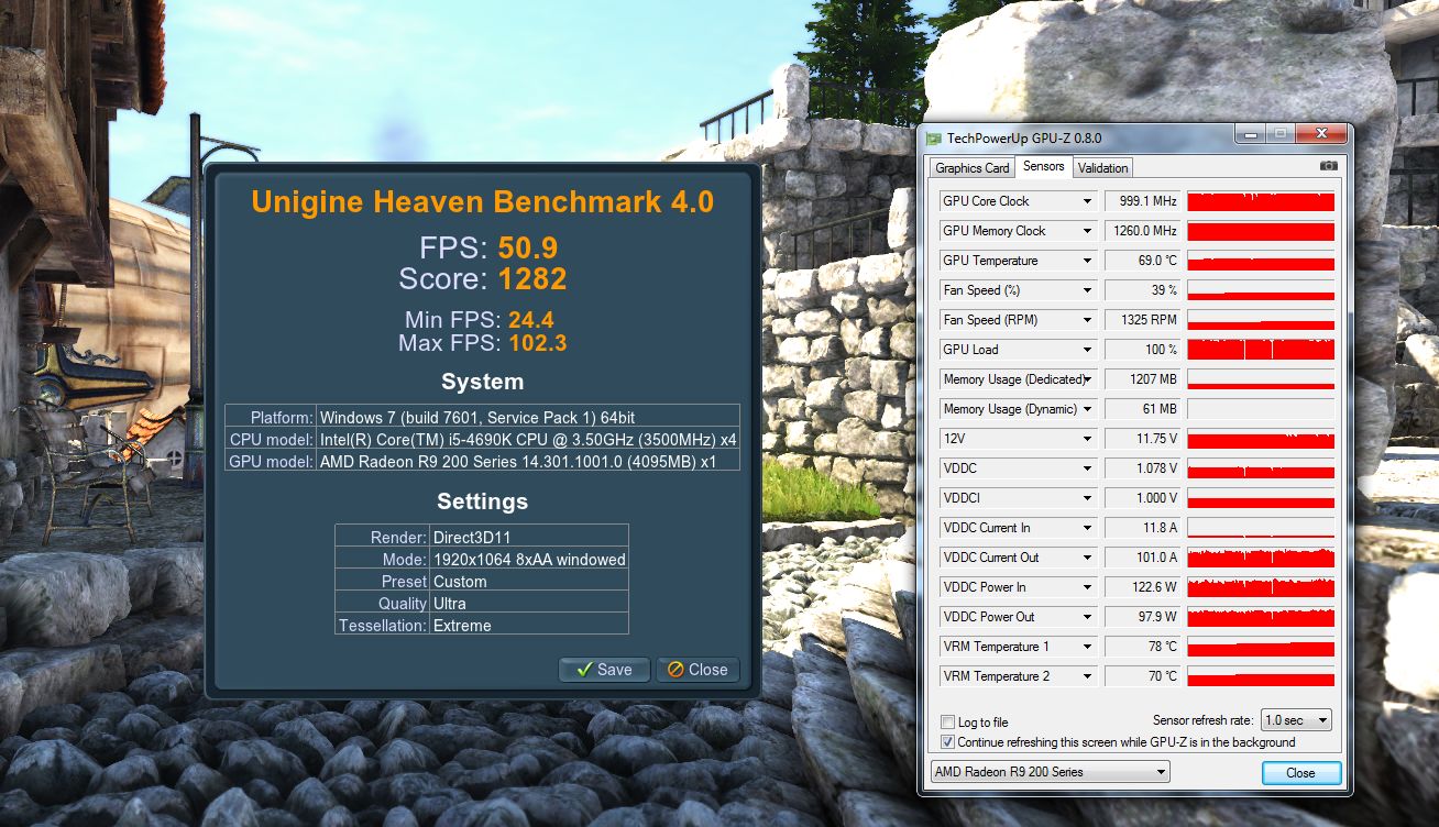 BYNC Все в порядке с разрешением,это оконный режим ,поэтому не 1080,а 1064, на весь экран не скринится,попробуйте сделать как я - увидите сами,думаете температуры будут другие или может я смахлевал?) Я поэтому заскринил результат,чтобы можно было увидеть на каком разрешении я прогнал Хевен,а вот зачем у Вас настройки одни,а сам резалт с другого ( принципиально) разрешения,а соотвественно и температура .Если собрались по честному сравнить СО ( кстати,не я был инициатор) так и нужно делать,а не что попало слать - последние скрины ни о чем.