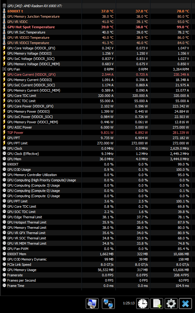 Верно тут сказал один камрад: Aorus 6900XT - самое бестолковое применение XTXH чипа. Если карту себе оставлю как планировал на постоянной основе, придётся думать о водянке. Но сначала с бп разобраться, если это он виноват. Так то при настройке на повседнев 2400-2600MHz 1100mV(ниже опустить вольтаж при этих частотах не даёт, драйвер крашится, даже странно на 2700+ при 1080mV пашет) вполне прохладно: ядро/память 54-55гр, хот спот 70-74, vrm 70-75.