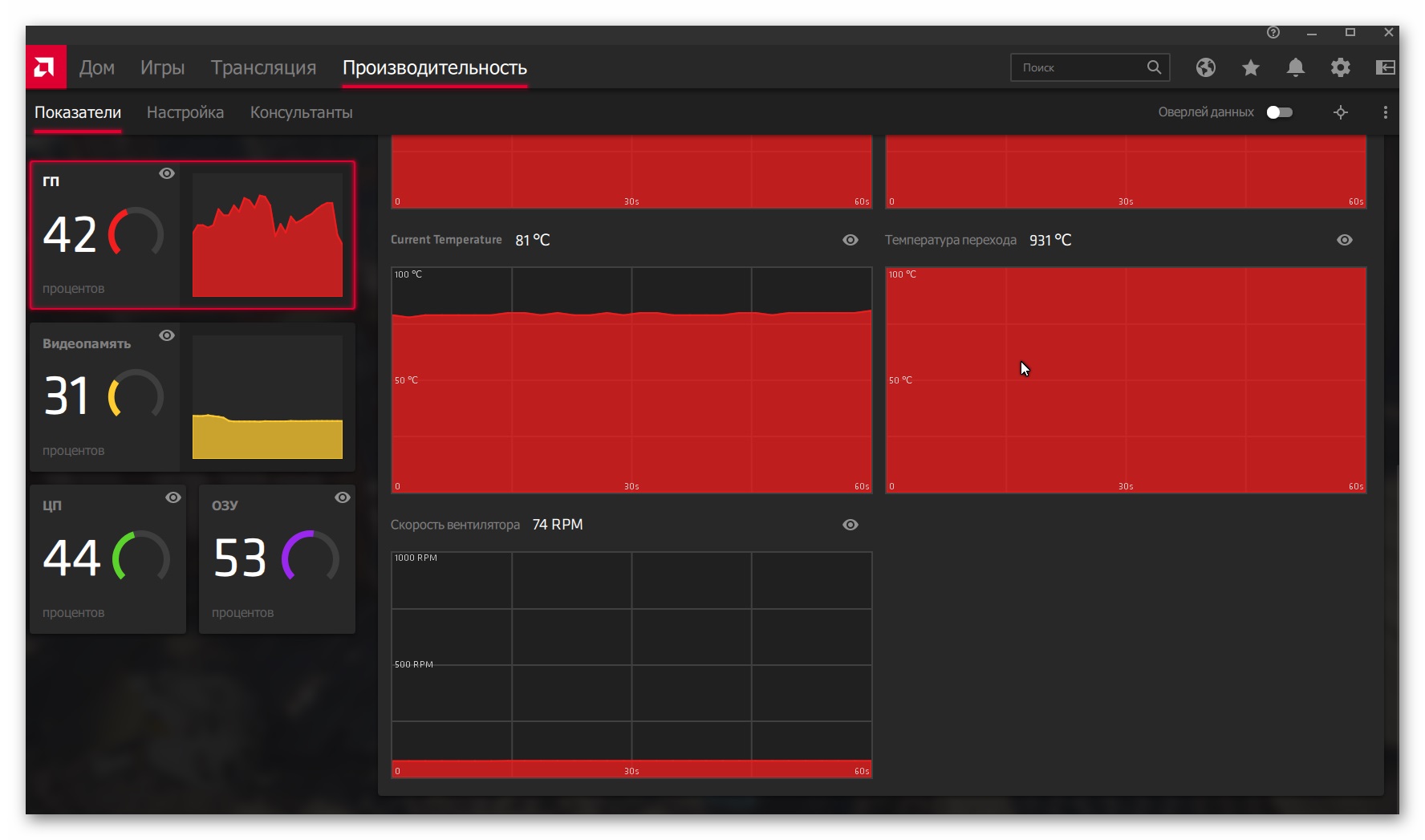 borat2 Запускаешь какой-нить мониторинг и смотришь. Можно gpu-z. Можно fps monitor. А можно и встроенный оверлей запустить с мониторингом через shift+ctrl+O. Там смотришь при каких фпс какая у тя частота графического процессора и видеопамяти, и какая нагрузка на карту. Можно хотя бы с этого начать.