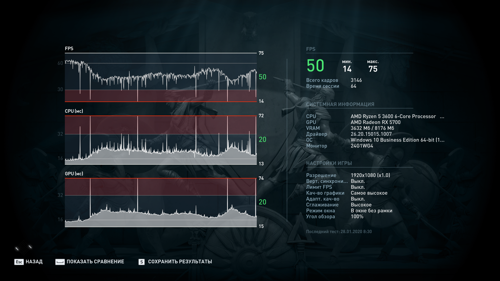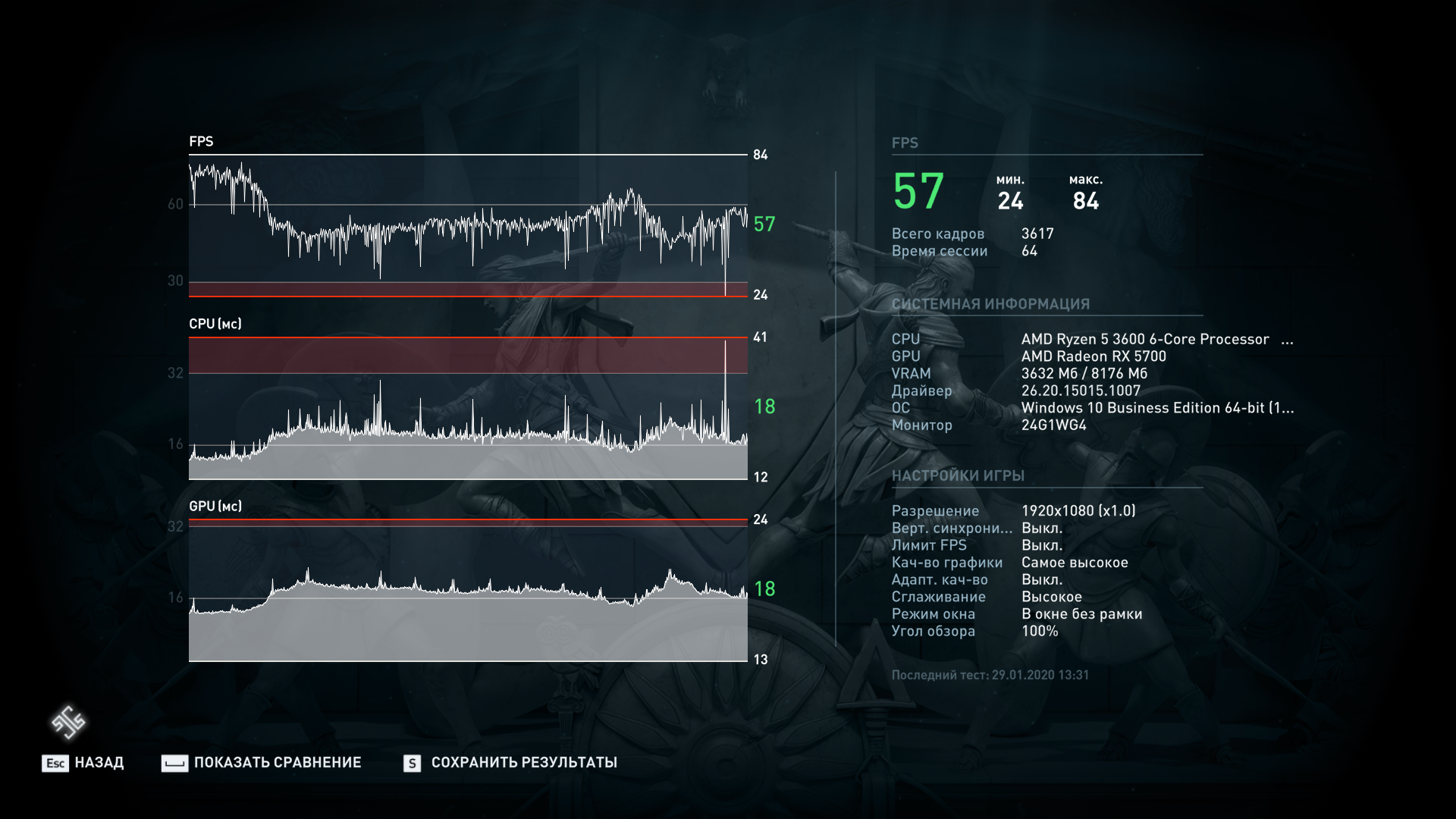 Может 2600? Хотя у чел. 3600-й вроде, у меня на работе стоит 2600+570, так на нем WWZ даже статтерит не по-детски иногда, на домашнем все идет наиплавнейшим образом. Хотя пики есть в рандомных местах, и есть в конце бенча небольшой скачок, думаю это связано с появлением на сцене большого кол-ва объектов.