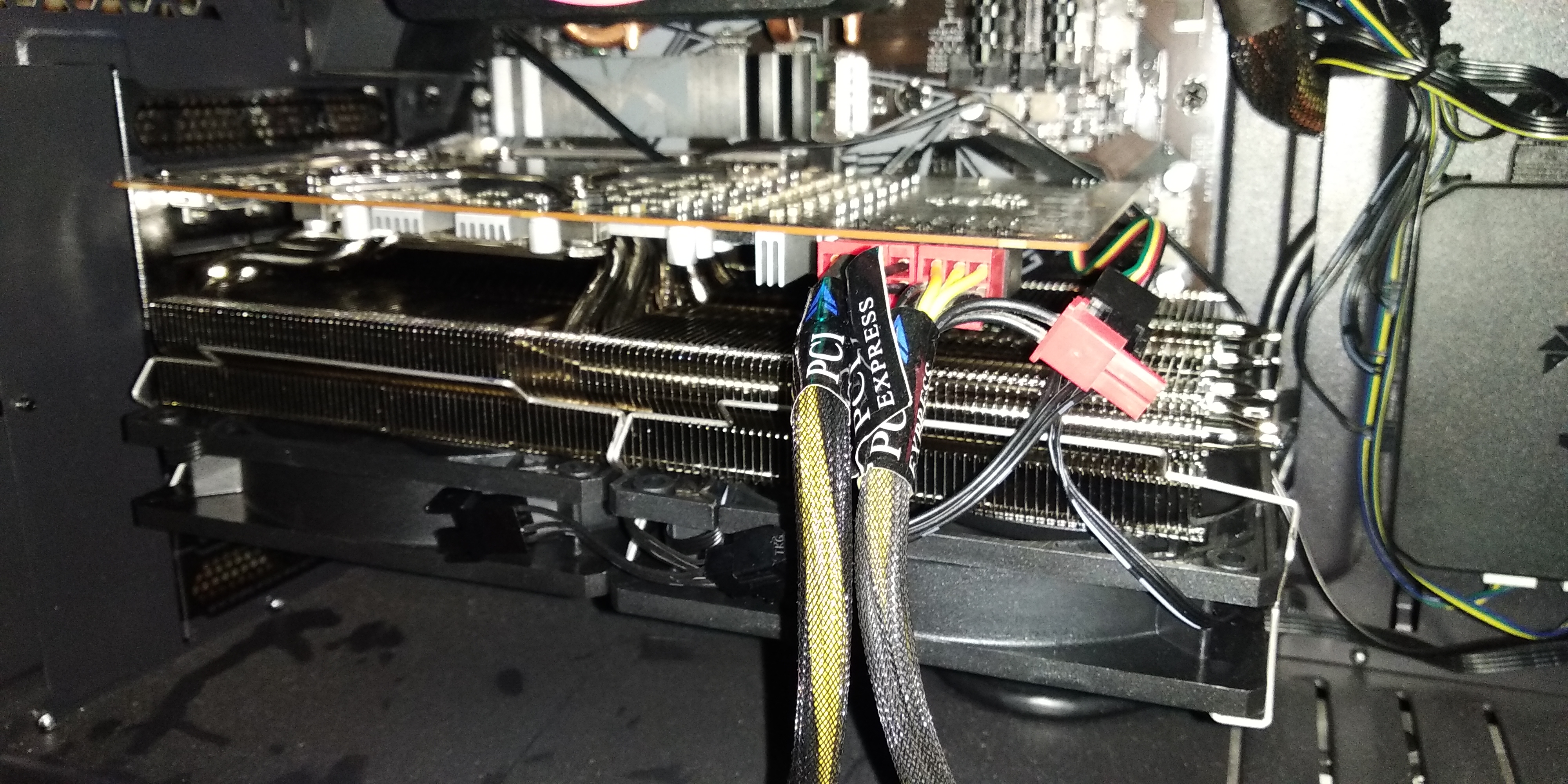 Рассказывать о процессе особо нечего, на ГПУ и ВРМ наклеивал комплектные радики через комплектную же термолипучку, термолипучка хорошая - после наклеивания за радиатор можно видеокарту поднять. Родной радиатор на ВРМ оставить не получилось, он привинчивается к декоративной крышке, которая сверху карту закрывает, а она в свою очередь мешает бэкплейту.