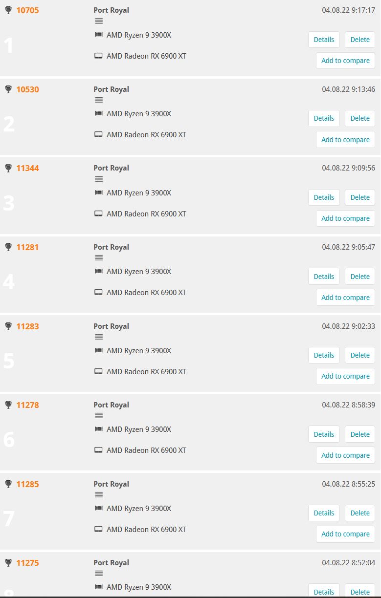 Лучше действительно, или скрины hwinfo к каждому прогону прикладывать, или хотя бы средние за прогон значения GFX частоты + эффективная (кстати, почему ее нет на сенсорах?), PPT, TDC, Tedge, Tjunction. Иначе это гадания на кофейной гуще.