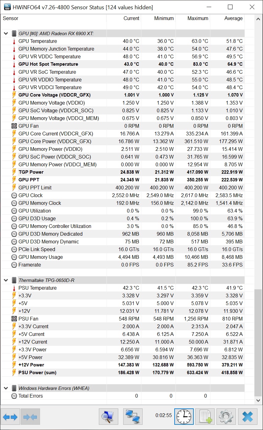 Да уже бестолку - тест перестал заводиться даже при выставленных 1138 мВ в драйвере. Я хз что это за помутнение у драйвера было. Благо додумался сделать скрин HWInfo при выставленных 1025 мВ, ибо заметил сниженное с 373 Ватт до 350 Ватт пиковое потребление карты.