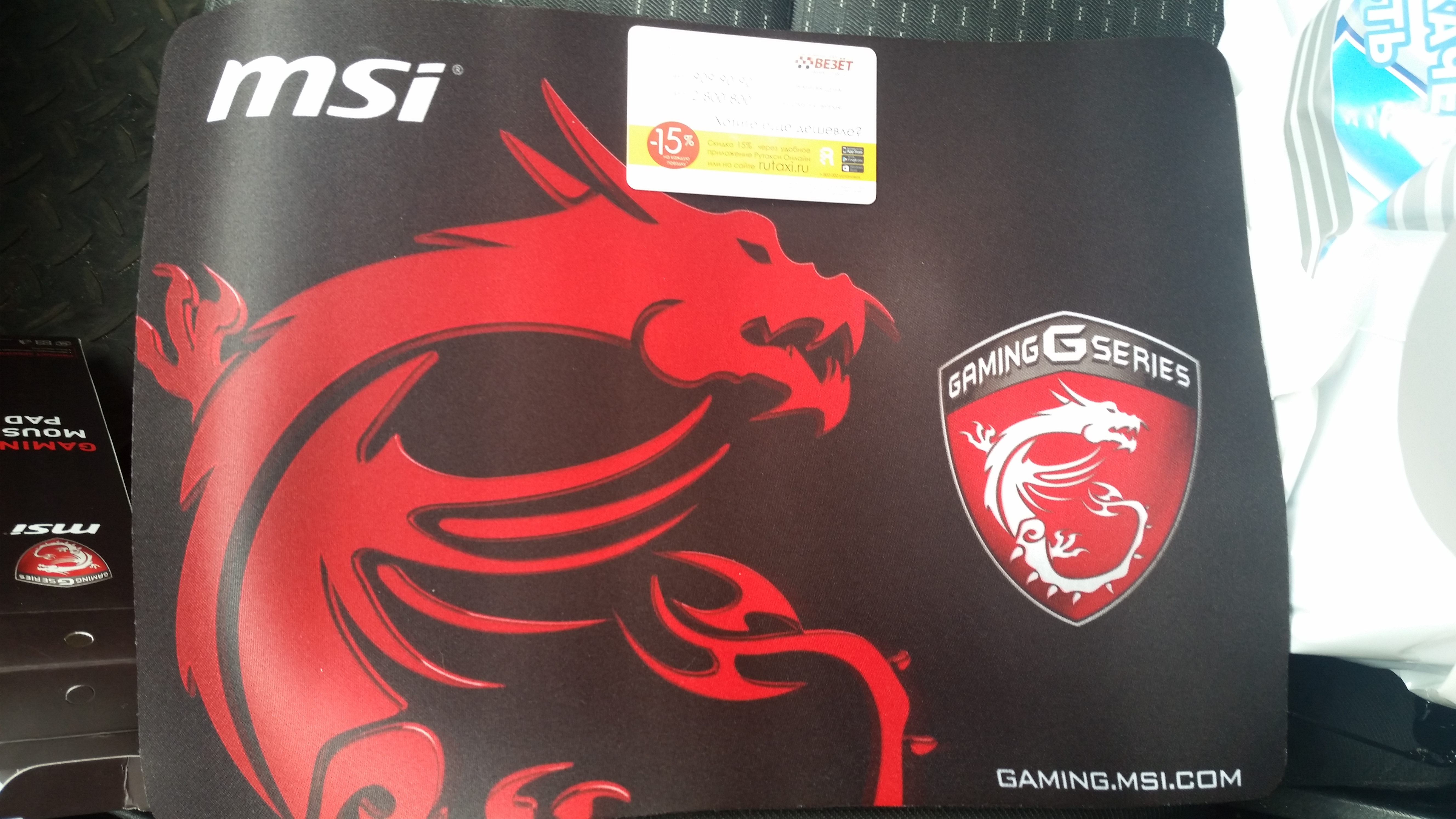 Сгонял в офис msi за ковриком по акции. Ну, достаточно крупный и качественный. Как бонус к видеокарте - вполне даже. Рейзеровский голиаф отложу в сторонку для разнообразия.