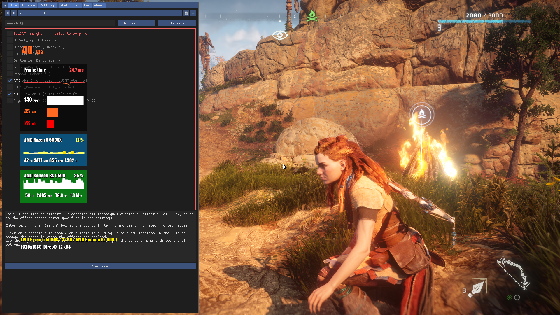 Вот сделал скрин с горизонта с ReShade и двумя активными шейдерами, лучи и некий Solaris (bloom shader) улучшающий источники света, правда в паре с лучами иногда слишком. Настройки с максимальных снизил до высоких чтобы компенсировать нагрузку от добавления лучей, хотя можно и не снижать. Картинка стала поинтересней, добавилось контраста, цвета более насыщенные, глюков пока никаких не было. Кому интересно, вот сами шейдеры - Link
