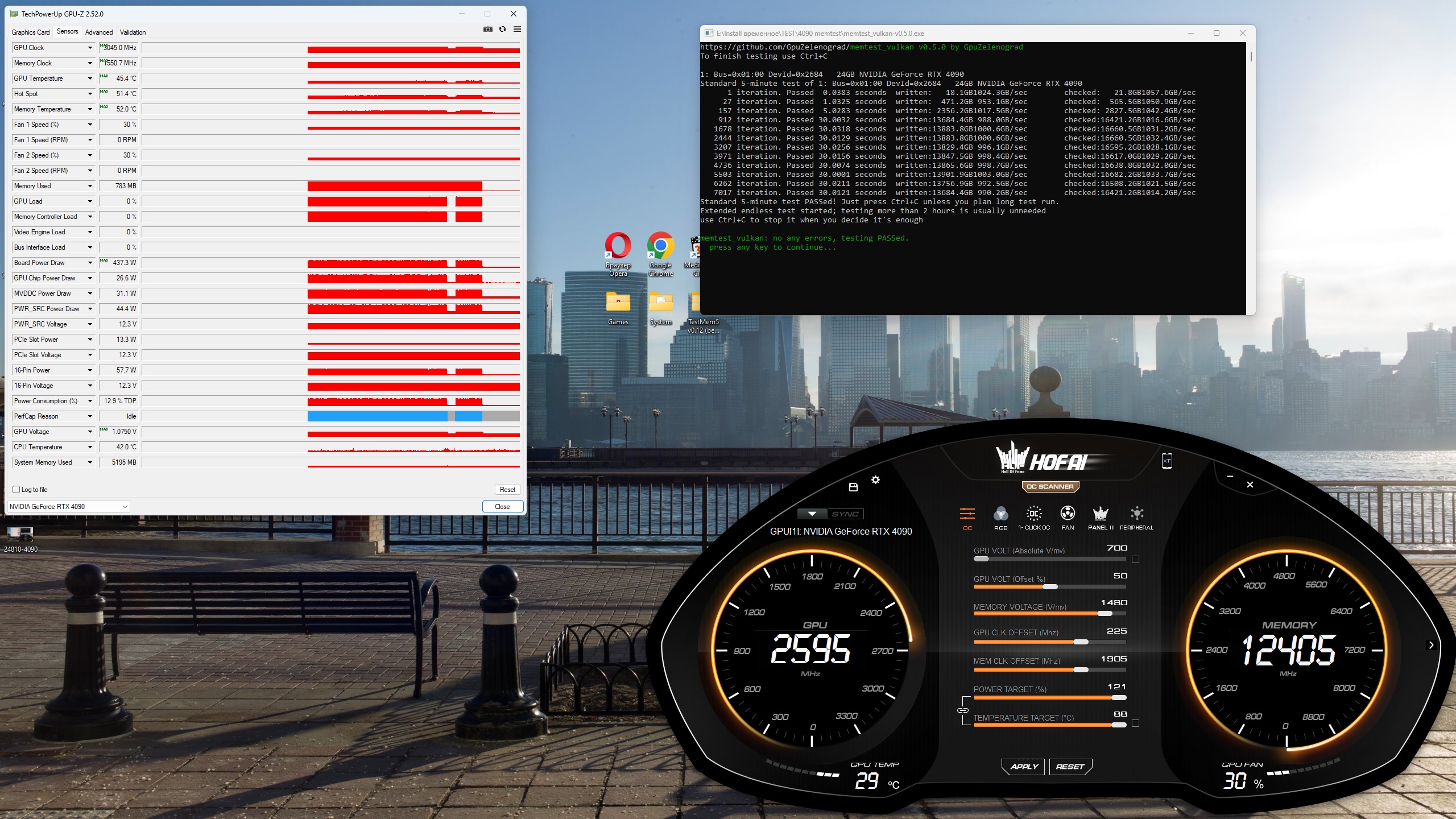 Одного раза хватит. Только на платный бис. Напряжение 1.2v. память ставил в сток +500 всего. Не экстримальный - это в моем понимании не на азоте. Но были и остались опасения за безопасность данного мероприятия с напругой выше 1.1 и 750вт. Вот память продемонстрировать 24800 - легко (файл ниже. Держит и выше 25500, но при тестах долгих 24800 точно без ошибок). Интересно, что тех поддержка Галакс уверенно пишет, что на всех ХОФах 4090 1-й бин чипа. Ос + или не ОС Лаб. Всегда думал, что на ОС Лабе лучше. Говорят, что просто отбирают внутри 1-го.