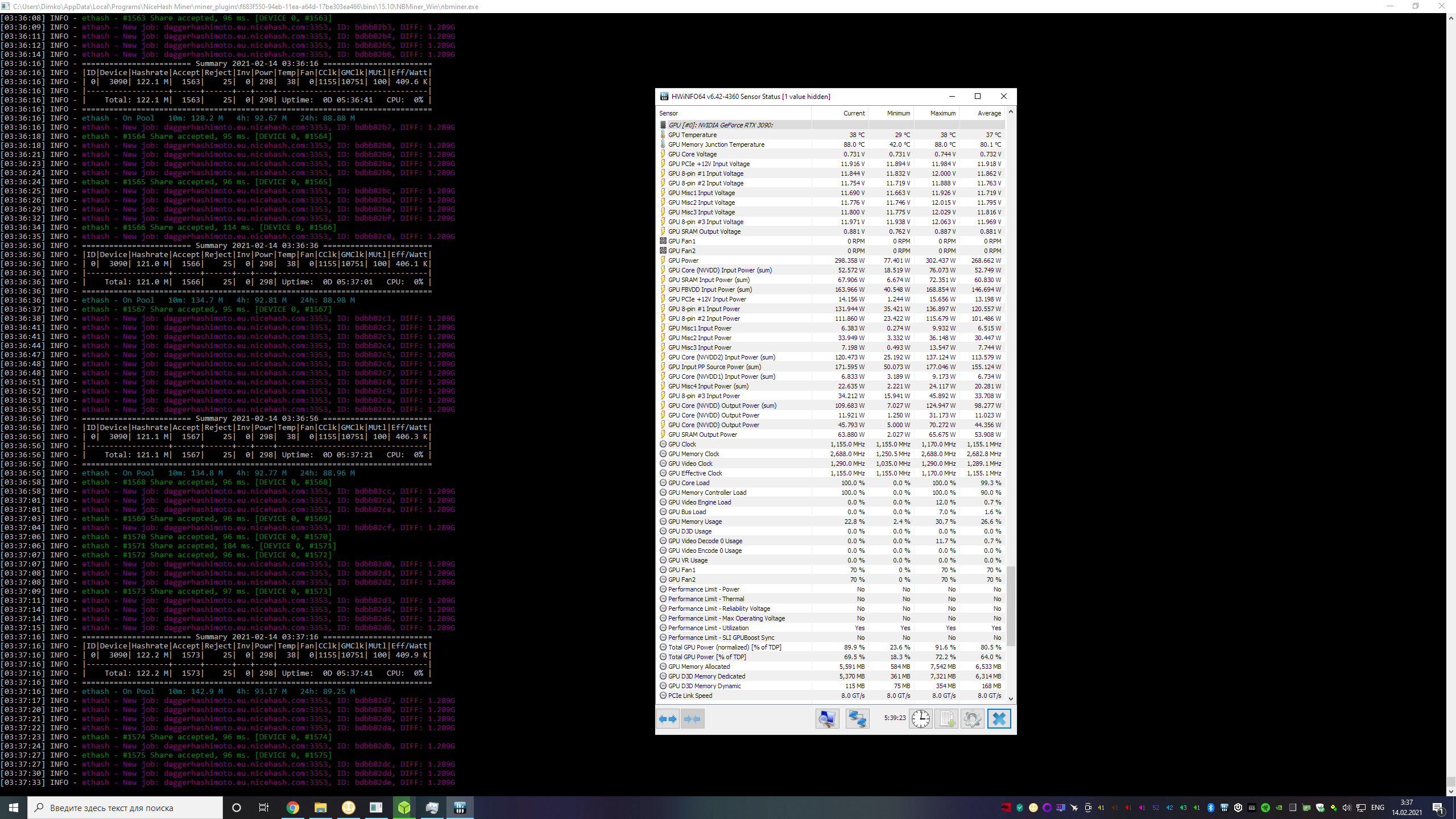 Palit GP 3080.Без воды)) В щадящем режиме..Можно конечно сделать поменьше темпер,но и хеши на чуток уйдут..Так что по памяти решили?Вроде 90 это норм,во всяком случае по спецификациям и ттх от микрон..