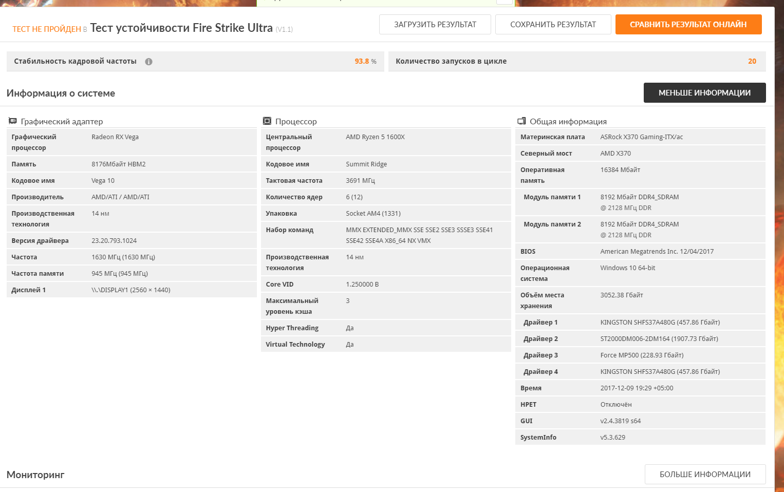 Добавлено спустя 5 минут 4 секунды: Видик подключен 2умя отдельными проводами от блока, блок на 750ватт голд. Win 10, 16гб ОЗУ в стоке 2133, проц тоже в стоке 1600x, мать Asrock Fatal1ty X370 Gaming-ITX/ac