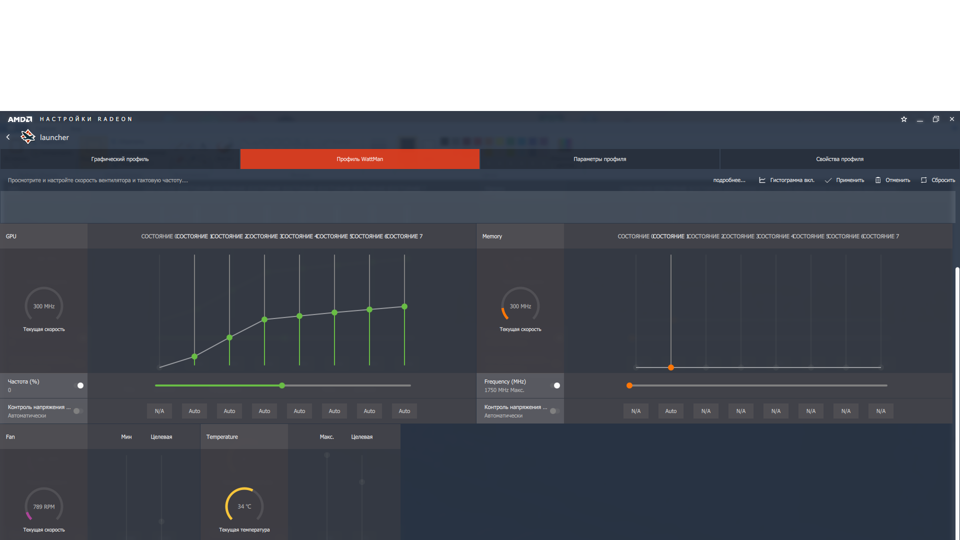 Q: Постоянно скачет частота памяти (или не снижается) в простое. A: При броузинге интернетов используется аппаратное ускорение - повышаются частоты чипа и памяти на некоторое время. Так же если у вас ДВА монитора, то частота памяти не будет снижается. Аналогичная ситуация для 144Гц мониторов.