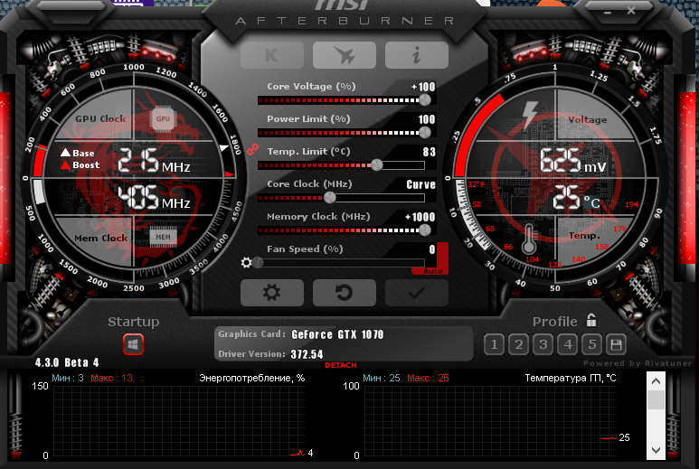 Сейчас прибавил Power Limit +20 (итого 120%); Core Clock +80; Memory Clock +200. Теперь в БФ 4 (ультра + разрешение 150%) фпс ниже 60 не просаживается. В среднем 70-75 фпс.
