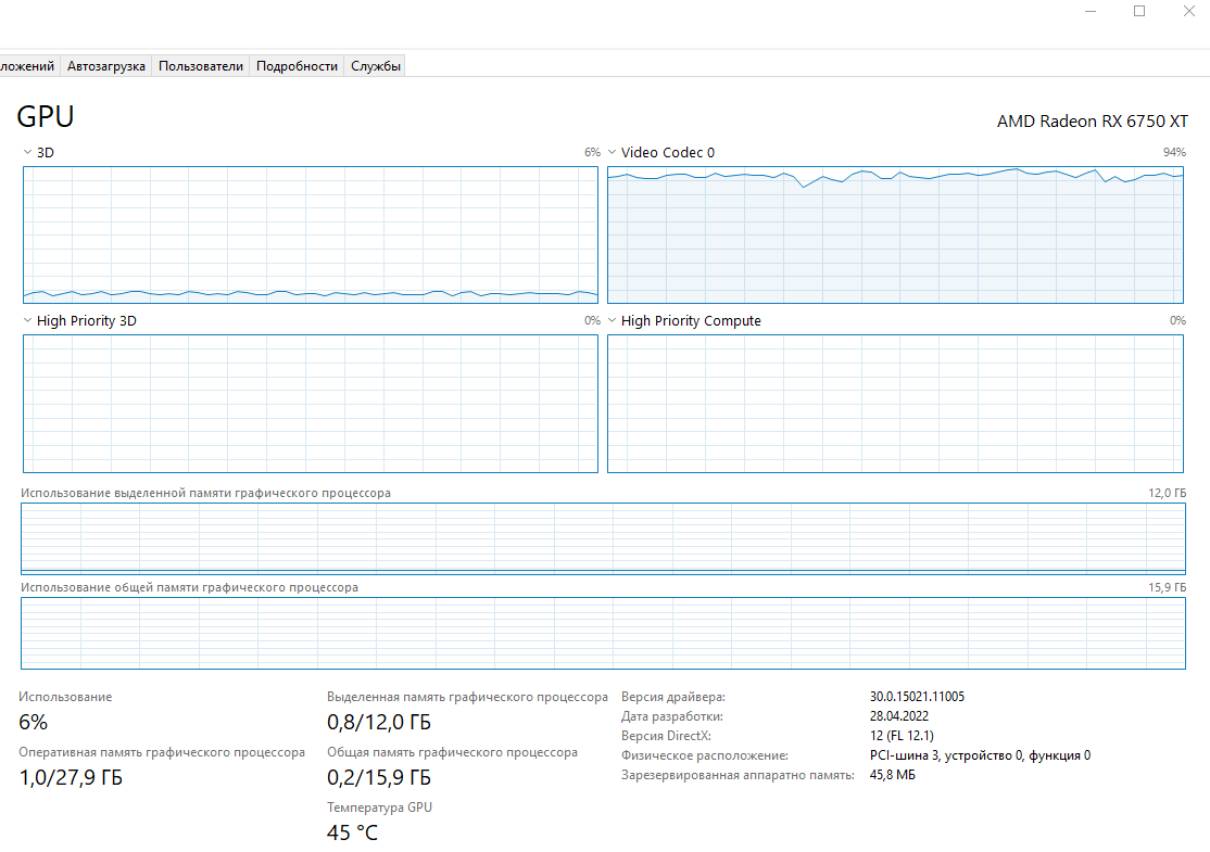 Ещё заметил такой прикол что декодер на 6750xt типа дрыщавее чем на 6600 ?!! Он больше загружен проигрывая одно и то же видео 95-100% против 77-80% так же и больше загрузка ГПУ 6% против 3%