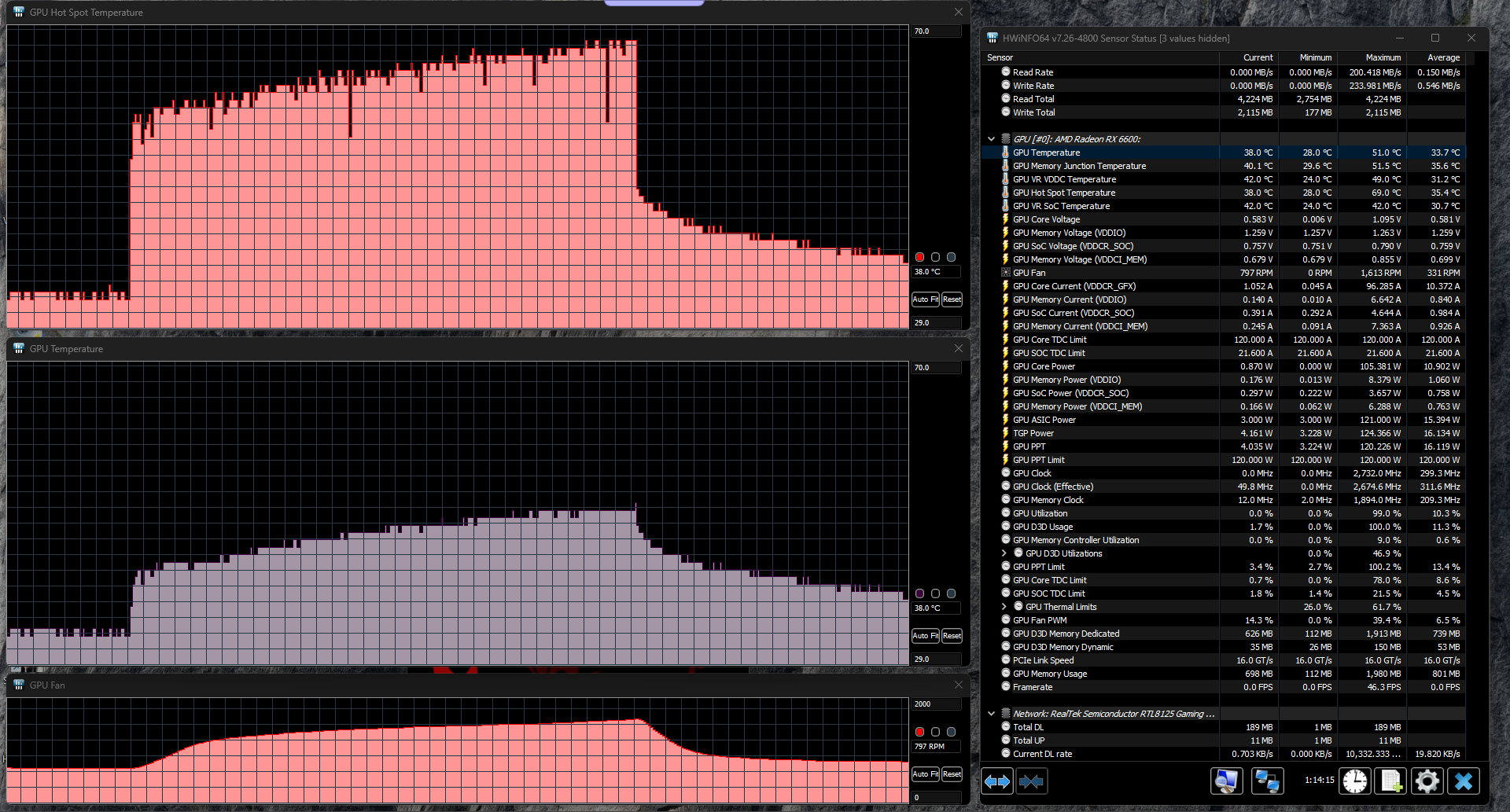 Я на хотспоте пока максимум что видел, это 77 и они набираются плавно от 50-55, выше я график прикреплял. Да и держать карту постоянно нагретой, не лучший вариант как по мне. Лучше уж тогда лимит мощности снижать в пару с андервольтом, чтобы снизить хотспот.