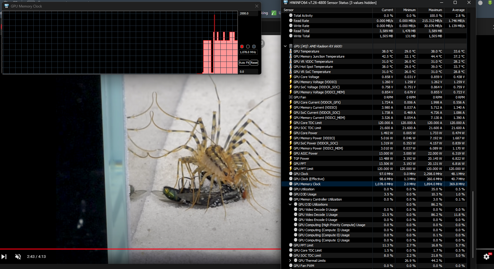 6900 XT: простой - 10-12 W, 720p60 - 32 W, 1080p60 - 32 W, 1440p60 - 43 W, 2160p60 - 45 W, 4320p60 - 55 W. В MPT отключены функции "DS_" (Deep Sleep). Напомню, что декодер у меня какой-то поломанный и часть нагрузки идёт на ЦП (даже после переустановки кодеков K-Lite Mega Codec Pack), а в последних двух версиях дров вообще не пашет аппаратное ускорение в браузере (FireFox).