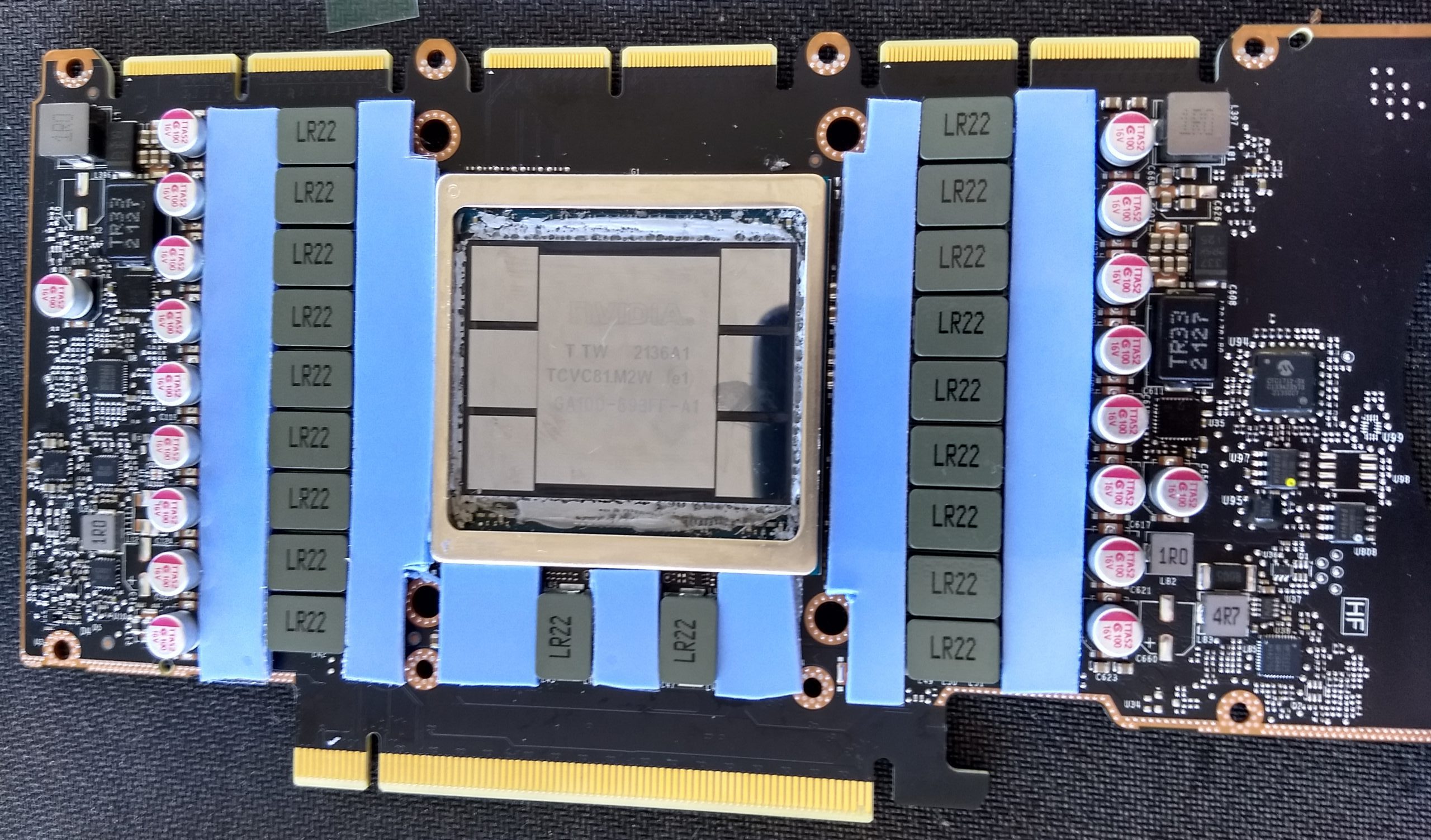 Точно, вот А100 это прекрасная наглядная иллюстрация почему HBM не впихнуть на видеокарту. Память там на подложке процессора не помещается, поэтому вся плата это и есть такая подложка с каким-то, наверное, невероятным количеством слоев, проблема подвода огромной шины к чипу решена через дополнительные чипы кэша и вокруг всего этого штабеля из HBM. Цена, совершенно закономерно, в десятки раз выше цены флагманской видеокарты.