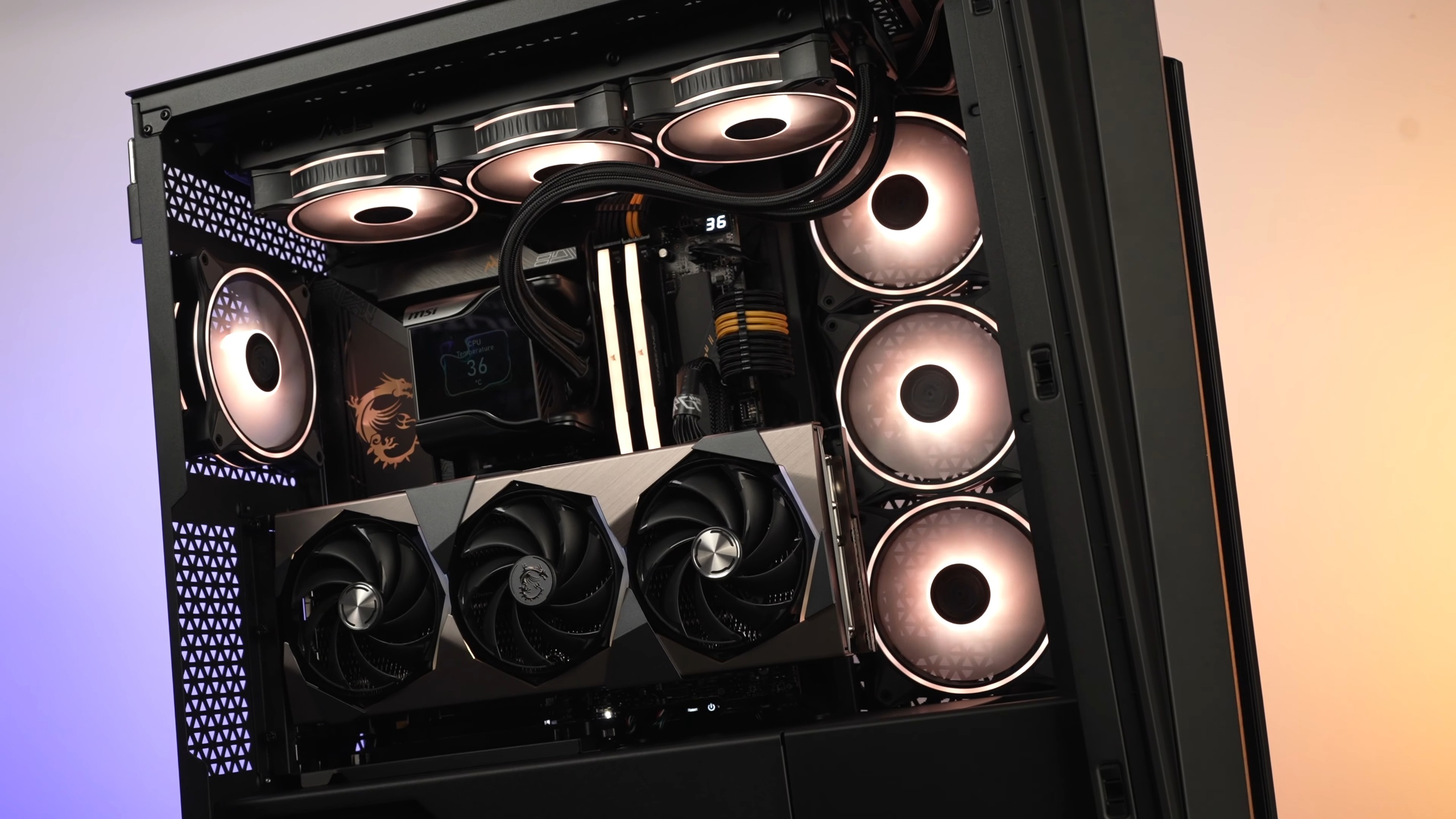 Всё прекрасно видно...Вентиляторы тише, фаз больше, дизайн лучше... Премиум продукт... Гейминг просто дно...