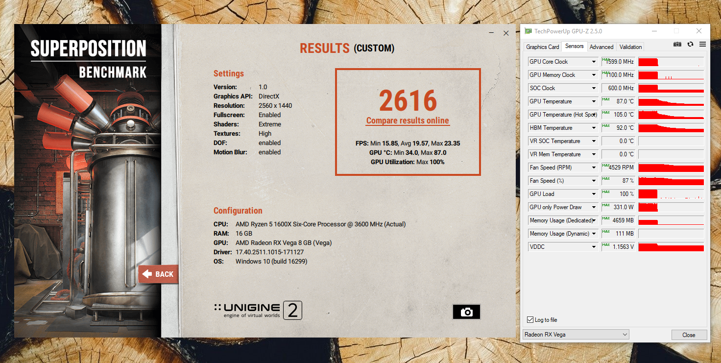 извеняйте за качество и за шум (у GoPro очень чувствительно звук записался) , но ReLive очень сильно убивает производительность в superposition почему то , что бы не было разговоров что "кукуруза" пришлось записать с экрана