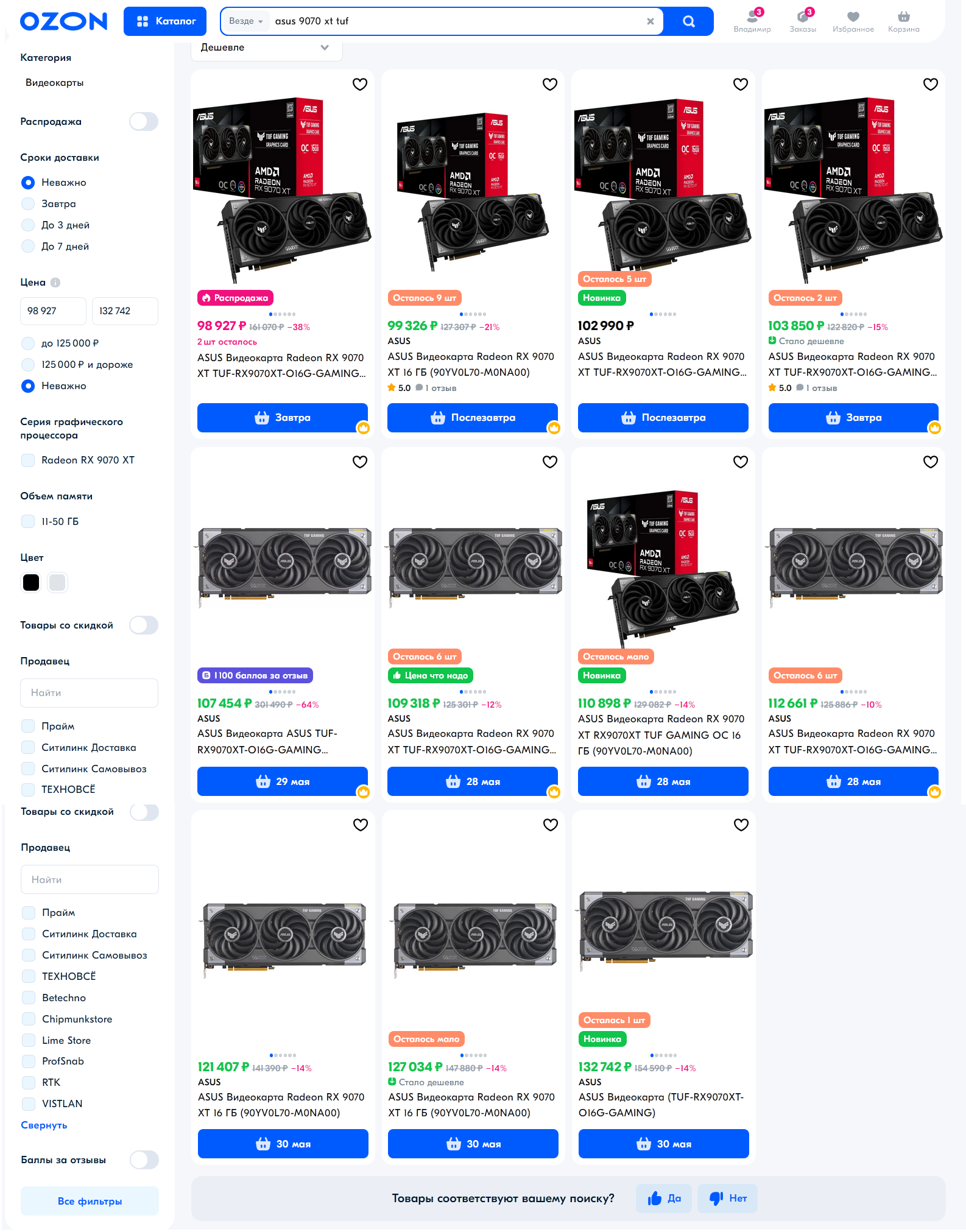 А это реальность и дальше может быть хуже. Вот цены закупочные от 3 марта в Азии Asus TUF 9070 XT – от 95 т.р. (в России было 115т.р.), Sapphire Nitro+ - 80-85 т.р. (в России 105 т.р.) Вот от них и "пляшите". А теперь добавьте налог + доставка + прибыль продавцу. Nvidiа подняла (2 недели назад) цены до 10% на чипы, на этом фоне AMD точно скидки делать не будет. Скидки будут, когда Nvidia выпустят Super версии, а их, скорее всего, выпустят осень-зима (до Рождества вероятнее). А РРЦ в 600$ это первые партии чипов AMD продавала со скидкой (точнее компенсировала разницу) своим партнёрам из-за переноса выпуска. А дальше (в данный момент) можно забыть про РРЦ