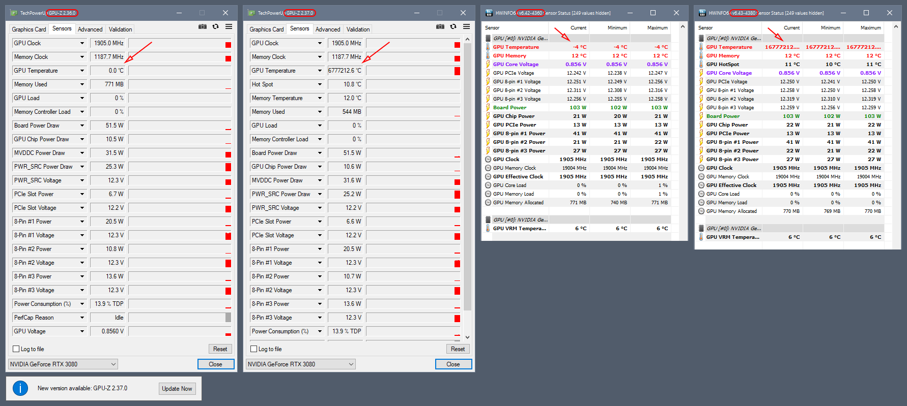 Cyborg39rus хоть и не круглый год, но в зимнее время обычно так, вы не первый... бесит то, что вроде как в одной версии все сделают корректно, то в другой, добавив что-то, "ломают" рабочее"... с процессорами что в GPU-Z, что в HWiNFO тоже самое, до нуля и все, но хоть нет цифр длинною в километр...