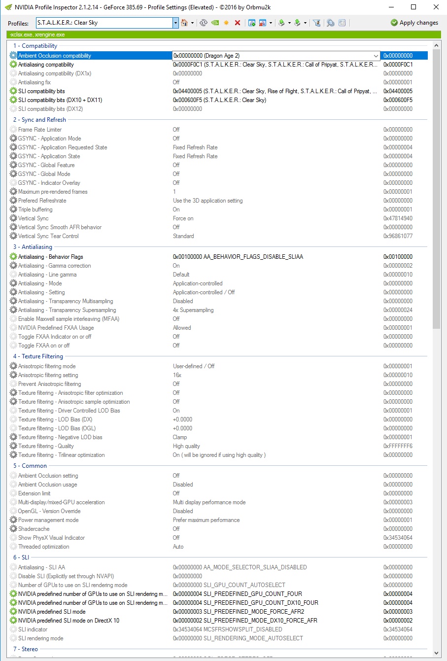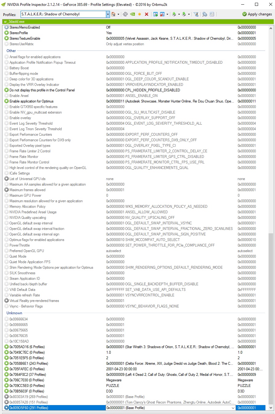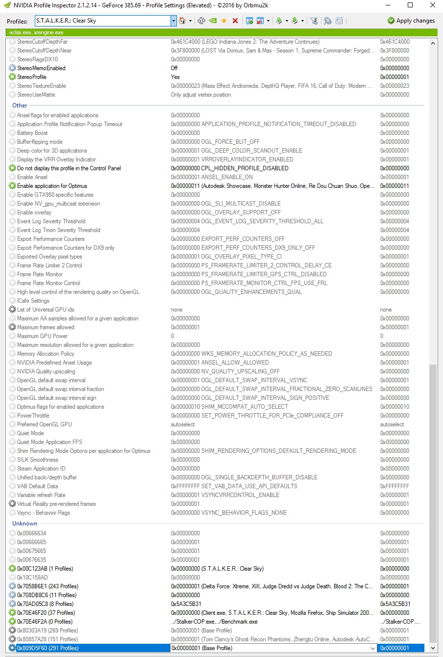 Не я, но как бы он сам как-то и где-то их похоже цепляет (от Clear Sky или от Call of Pripyat - я хз, как). Может фикс помогает найти нужный профиль. Я играю в DX11 (на полных же ), а такого рендера в оригинале игры и в профилях, соответственно, нет. В LA движок моддили и добавляли рендер r4 сами. Сейчас для интереса взял и удалил в инспекторе все упоминания об XR_3DA.EXE. Пофигу. SLI находит и работает также, без изменений.