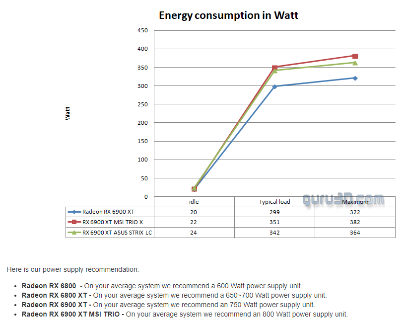 Факты: nvidia указывает для 3080-3090 рекомендуемый бп - 750W, только для 3090TI - 850w amd указывает для 6800XT-750W, для 6900XT-6950XT - 850w Амд не верит в энергоэффективность собственных карт? Как я уже писал - нужно смотреть в играх и реальных приложениях.