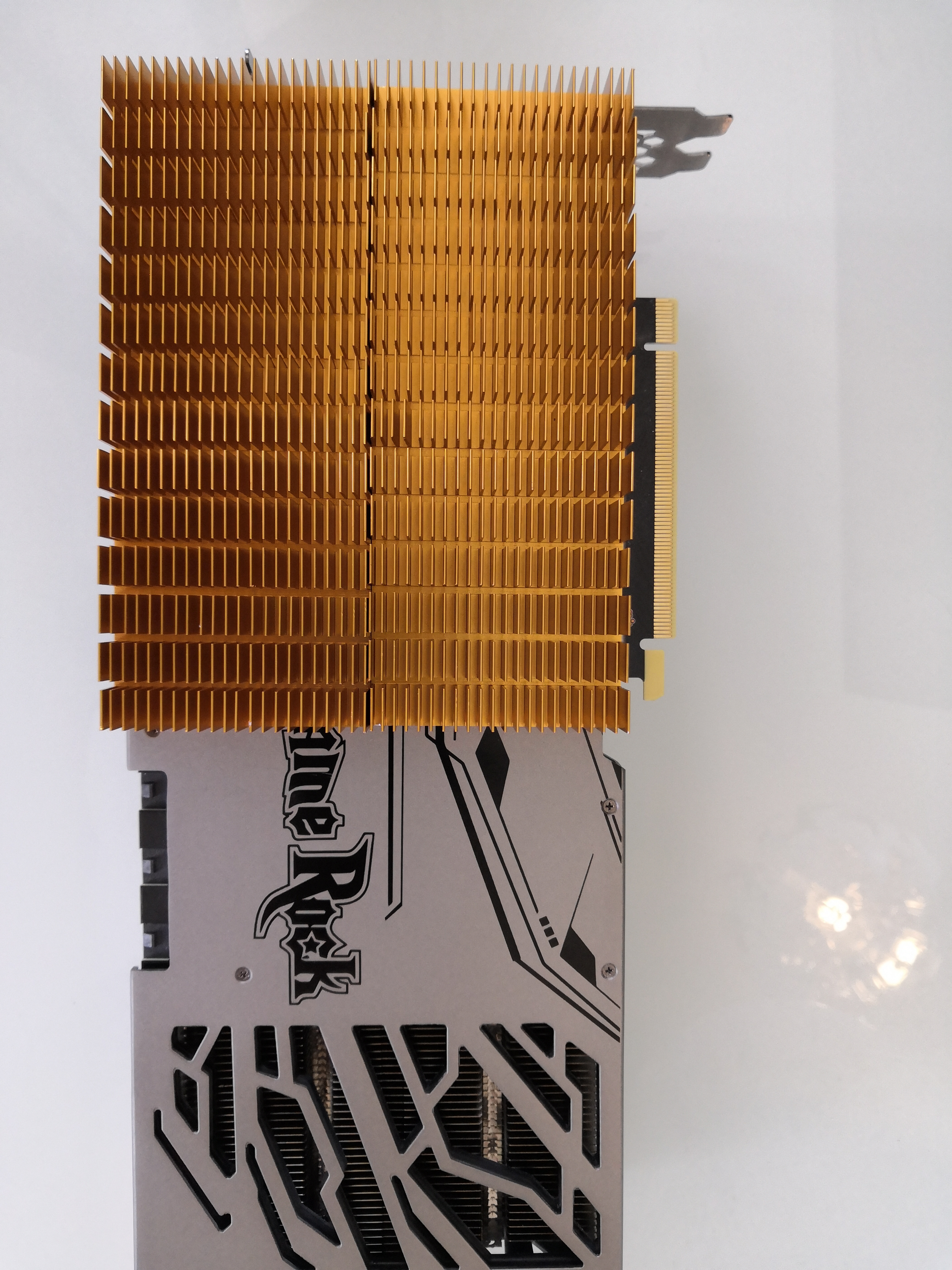 Кстати, меня посетила та-же идея ... температуру выше 82 уже не видел, в среднем в 3дмарке 70. Карта стоит вертикально, радиаторы (3 штуки с алика по 250р каждый) на карте держатся на термопасте, съезжают вниз под своим весом до радиатора М.2 и там прижимаются парой связанных 120мм вертушек дующих вдоль ребер вверх под углом 45 градусов. Таким образом теплый воздух нигде не застаивается, а термопаста удерживает чтоб радиаторы не оторвались. Реализации уже больше недели, пока все нравится. На фото не видно, но они заканчиваются за 2мм до начала сквозной продувки. Вверх выступают над картой на полтора сантиметра (это не мешает). Термопасту использовал GD900, посчитал что при таких площадях теплового контакта расходовать много MX4 нет смысла.