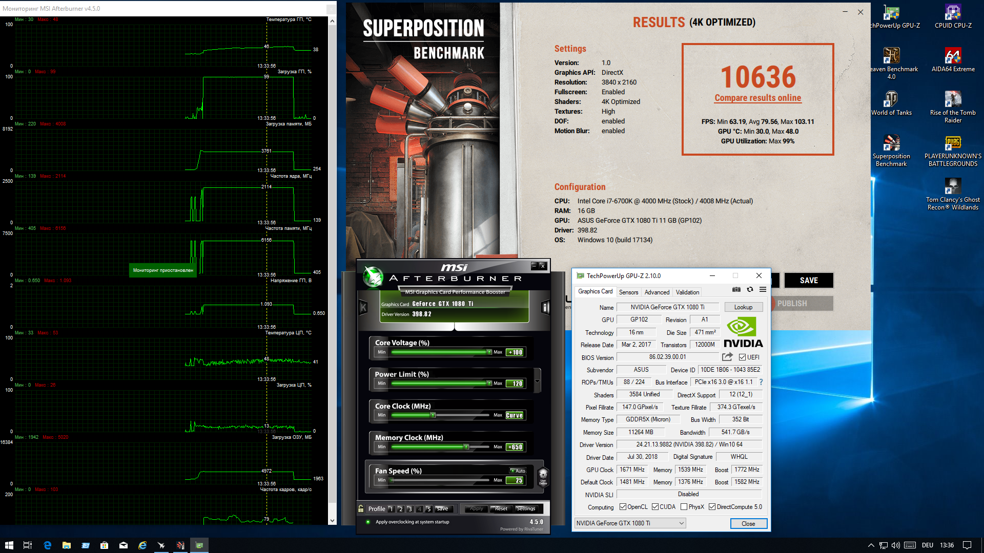 and00, да я знаю, я на таких настройках с первого дня покупки 2038/12800 v0.95 Power Limit 100%. С настройками кривой я более менее разобрался, конечно всё это очень странно. К примеру если выставить 0.975 и 2000 то лимиты не Power Limit не поднимается вышел 111%, а если напряжение поставить 1.000 то можно увидеть и 120%. Я так понимаю Superposition Benchmark немного зависит от системы в целом. У меня результат на одних и тех же настройках меньше чем у вас, есть возможность прогнать 3dMark Time Spy?