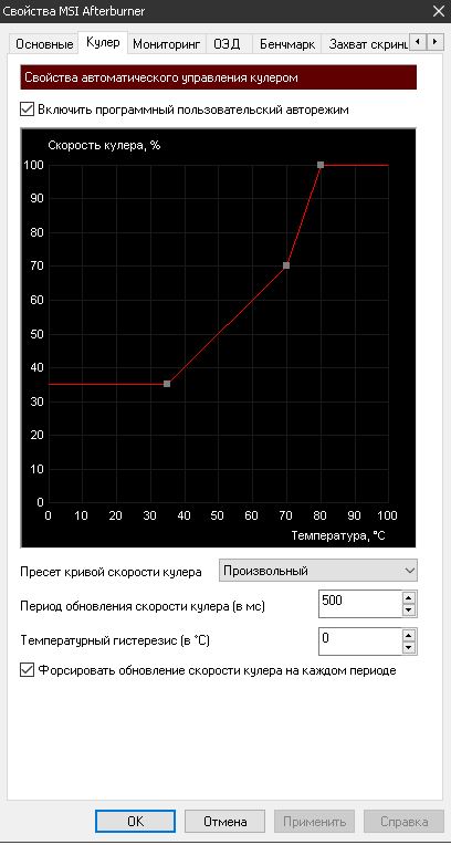 MickermaxMadMaxx Ну у меня в овервотч на минималках и с локом фпс на 144 карта грузится на 30+% и температуры все время в этом районе, я пока не разобрался при 50 включается или 55. Но оно стартует, причем обороты довольно высокие, тут же охлаждает или хз и выключается. На какую темпу настроить лучше пока не могу понять. В простое кстати в районе 47 градусов.
