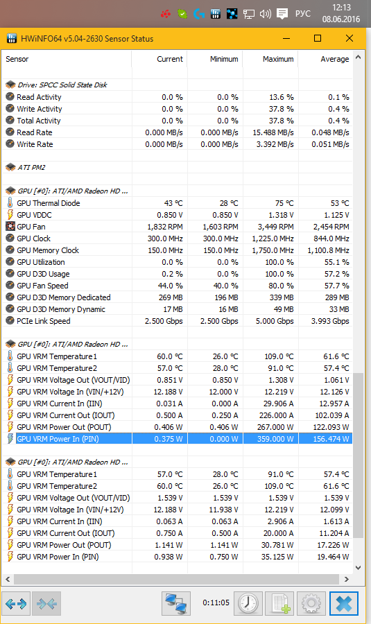 ещё моя видюха походу начала тротлить на 5й минуте, нагрузка на чип иногда сбрасывалась до 63% и температуры успешно падали, я думаю просто +50% паверлимита мало, но в играх везде всё чудесно, поэтому я не буду зашивать ещё больше предел паверлимита и врм выше 85 мне не доводилось видеть, как и чип за 70 в современных играх, да и даже если бы была игра как фурмарк по нагрузке, я же в неё не играю, значит не важно это кстати второй раздел самый нижний называется GPU [#0]: ATI/AMD Radeon HD 7970/R9 280X: CHiL/IR PMBus - GPU VRAM, выходит там 30 и 35Вт это стока ест память? не думаю тогда что разгон памяти сказывается как-то ощутимо на общих температурах
