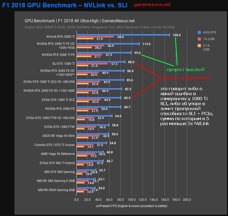 К видео у меня единственный вопрос-претензия: с чего он решил (или просто не учёл?), что эмуляция SLI на мостах NVLink будет ограничена 2 ГБ/с, как и на родных SLI мостах?