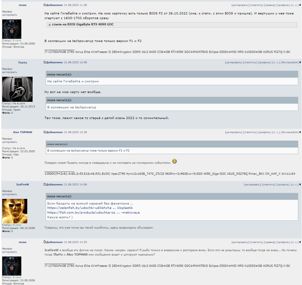 LEO_SAN А тебе прям STOP FAN нужен или что? Иначе я понять не могу зачем тебе перепрошивать биос в надежде получить другую работу кульков. Установи себе Fan Control, настрой как твоей душе угодно (благо настроек там тонких много) и пользуйся в удовольствие. Настраиваются такие моменты, как: с какой фиксированной скорости (в %) стартуют вертушки, с какой скоростью они ускоряются и затихают.