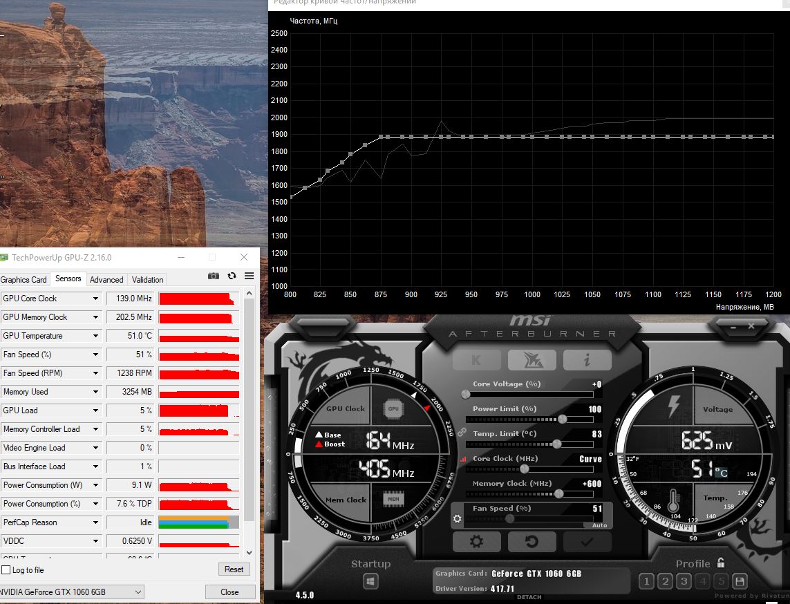 если не подымать курву на 1075(макс.допустимое напряжение),то будет желтая полоса "VOp = Показатель производительности ограничен максимальным рабочим напряжением". Зелёная- "Pwr = Показатель производительности ограничен общим пределом мощности".