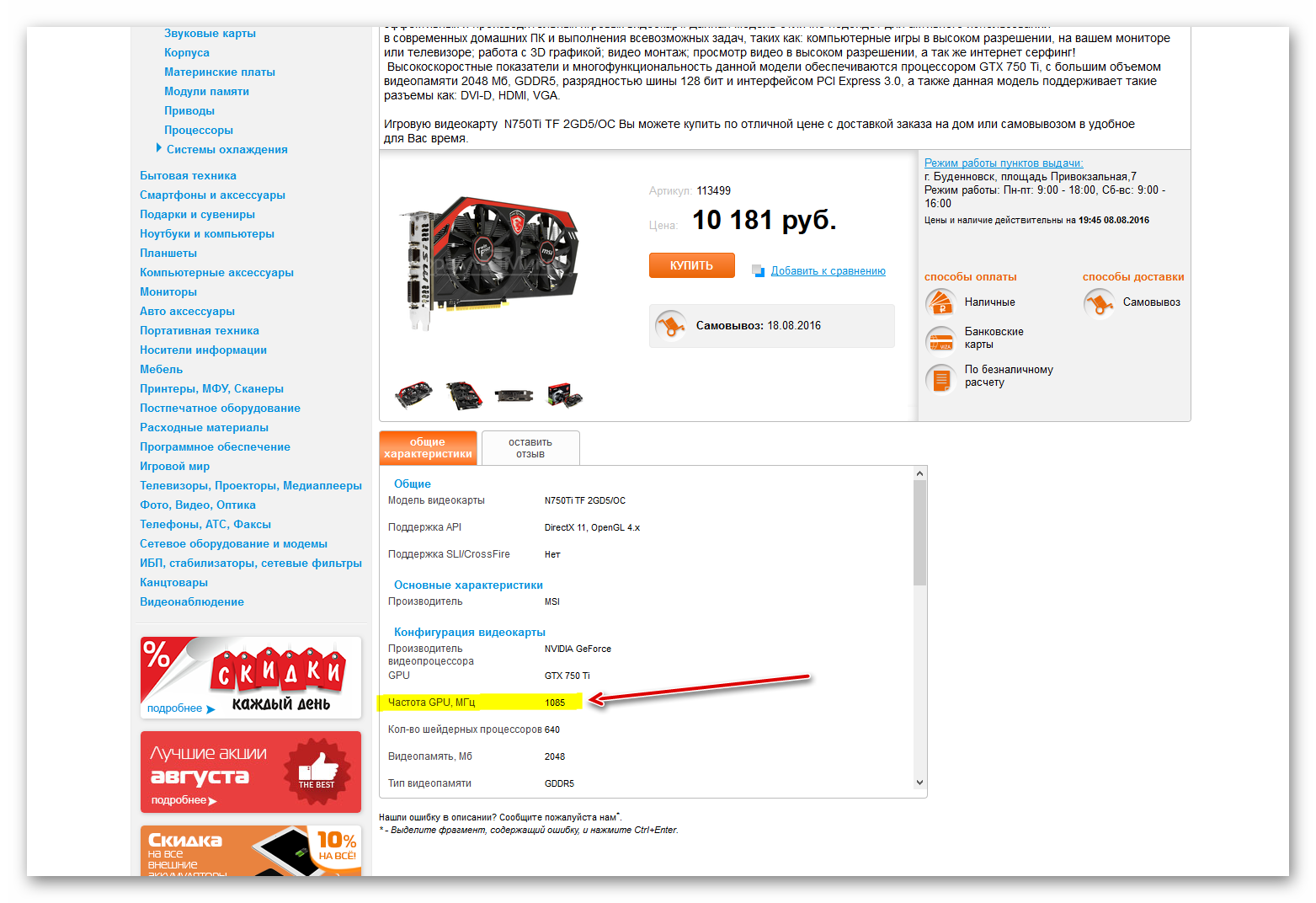 И я помню разговор с продавцом, о заявленной чистоте заводского разгона, и что она 1085 MHz (правда видеокарты тогда не было в наличие, и пришлось заказывать через сайт магазина). Вопрос: Стоит ли подымать шумиху из за того, что подсунули видеокарту с меньшей чистотой, или это особо не важно и волноваться не стоит? Всё же если разгоняю, то значение ставлю выше 1059-1085. Похоже это русская рулетка, какую карту пришлют, ведь внешне не отличить.