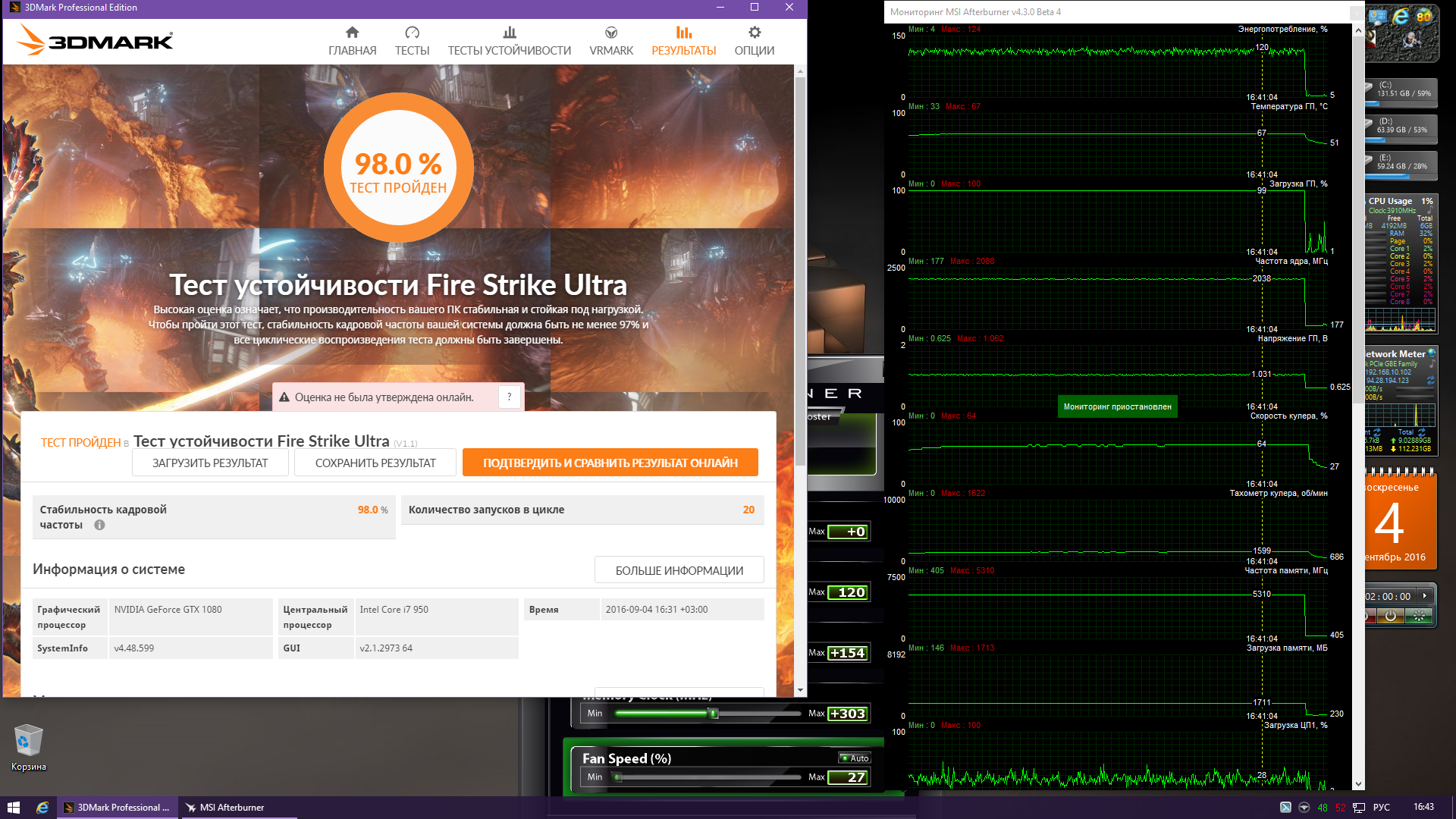 15 минут фурмарка на Gigabyte GeForce® GTX 1080 Xtreme Gaming Water cooling