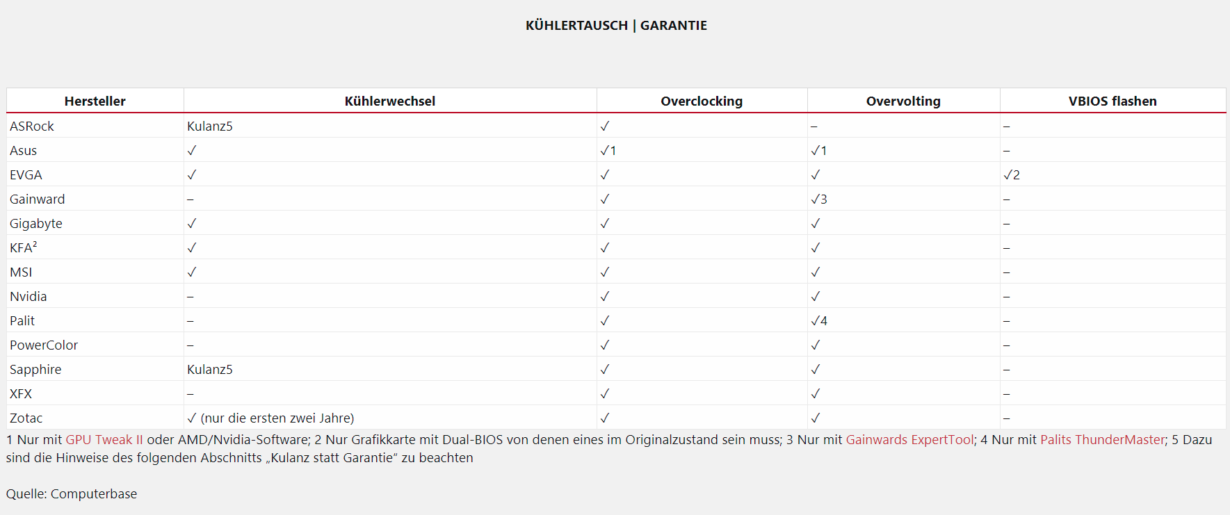 Интересная таблица у немцев, условия сохранения гарантии при выполнении определенных манипуляций с картой. Но только у нас вендоры за все бьют по рукам, пользуясь устаревшими законами.