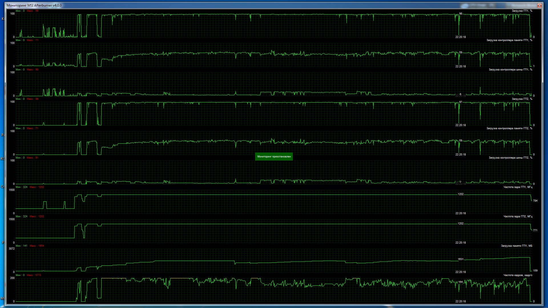 самому стало интересно вот начал биошок с русской озвучкой (хоть на игру посмотреть, а не читать всю игру диалоги ) когда загрузка памяти перевалила за 1600 (это в Колумбию прилетел и немного по городу побегал) хорошо видны падения фпс (кстате хоть фпс и падает не очень сильно, но выглядит это как фриз) и снижение загрузки карт при резких поворотах камеры или быстрых перемещениях по городу.