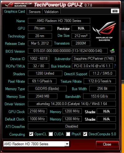 Пополняю ряды владельцев 7800 серии. Прибарахлил позавчера 7870 ггц эдишн от Сапфира - сменил 560 Ti. Протестил в Крайзисе 1, Хард Резете и Метро ЛЛ - фпс вырос очень существенно. Дольше всего поиграл в Крайзис - в мясе теперь без сущ-ых просадок при макс. настройках и сглажке х4 ( далее выставил х2 - достаточный уровень сглаживания и фпс заметно возрос). Карта в нагрузке заметно тише 560ti , макс температура - 64 градуса ( хорошо вентилируемый корпус) в простое 28-30. Асик - 82.4 %. В 2д напруга ГП - 0.825 , gpu vrm - 0.85, в 3д ГП - 1.2, gpu vrm - 1.206. Без поднятия напряжения разогнал ГП до 1100.