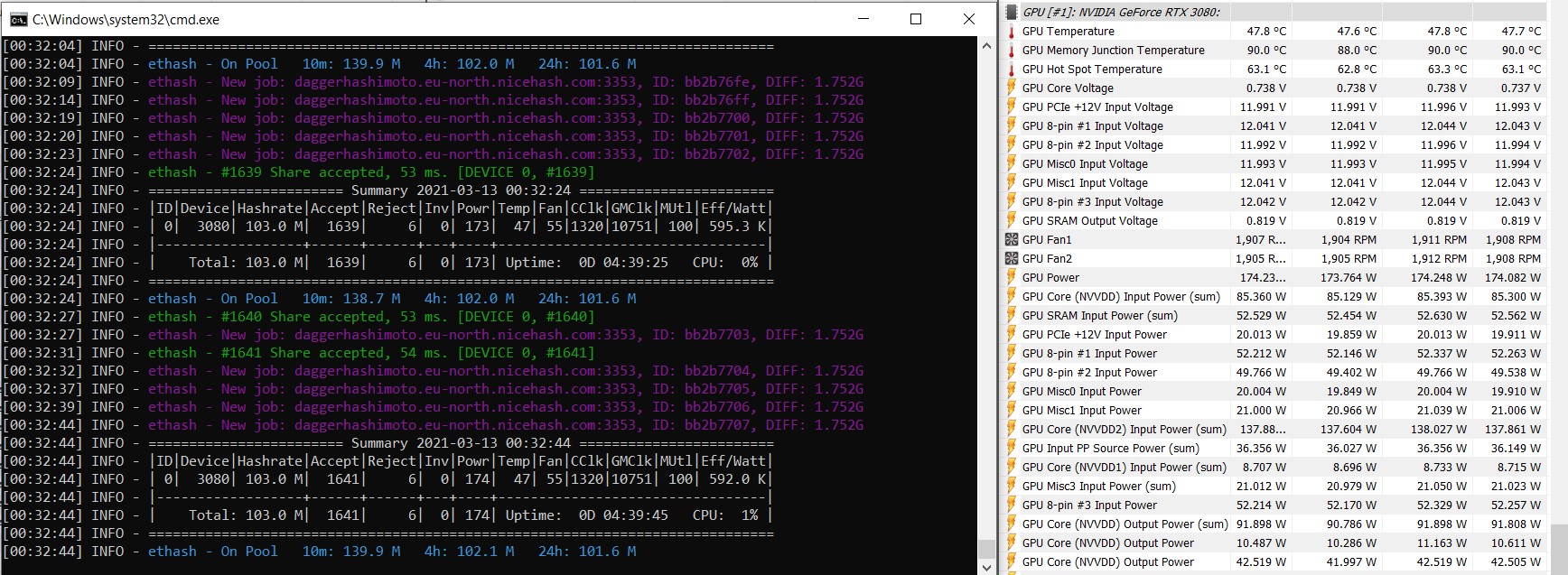 PS: считаю, что HWiNFO не верно снимает показания с установленных на ускорителях Palit датчиков, ну либо действительно произведены манипуляции в направлении Hashimoto.