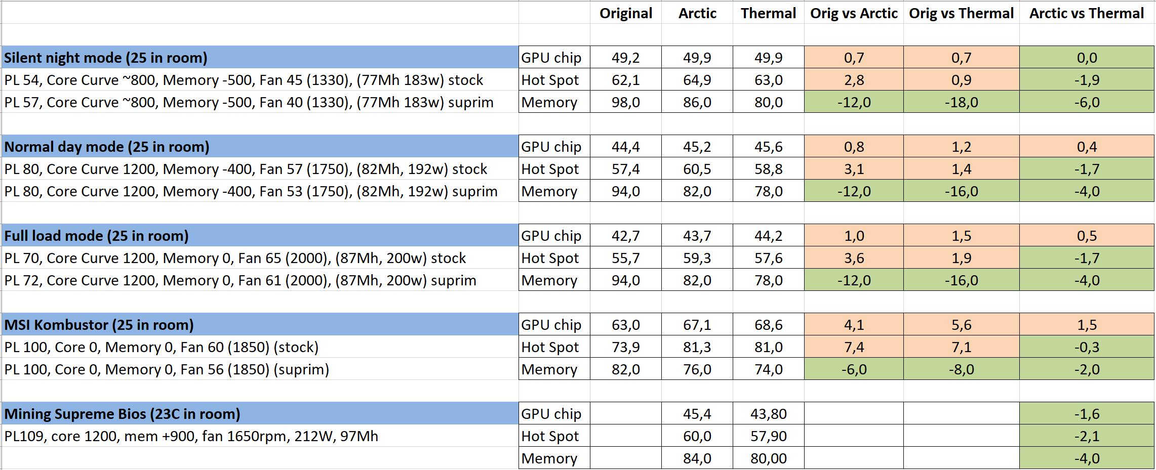 16.09.2020 - создание темы, добавление ссылок на обзоры RTX3080 17.09.2020 - обзоры Palit RTX 3080 GamigPro OC, MSI RTX 3080 Gaming X Trio, Asus TUF RTX 3080, Zotac RTX 3080 Trinity, информация по блокам питания 19.09.2020 - обзор Gigabyte RTX 3080 Eagle OC 10G, Nvidia RTX 3090 22.09.2020 - косметические правки, добавление ссылок 23.09.2020 - добавление базы данных с сайта overclock (спасибо coka) 24.09.2020 - добавление обзоров 3090 26.09.2020 - полезная информация по видеокартам Аmpere (алгоритм работы вентиляторов, причины проблемы с boost), и другое 30.09.2020 - дополнение к полезной информации, добавление обзоров RTX 3090, правки в оформлении 02.10.2020 - начато заполнение F.A.Q. 06.10.2020 - начат сбор статистики по видеокартам 08.10.2020 - добавлена информация по видеокартам Palit RTX 3080/3090 серии GamingPro и GameRock от Palit Support 09.10.2020 - в F.A.Q. добавлена информация по видеокартам Palit, поддержке VRR и прошивке BIOS. Косметические правки 10.10.2020 - добавлены ссылки на обзор архитектуры Ampere. В F.A.Q. добавлена информация по GPU Boost и лимитам. 29.10.2020 - добавлены обзоры на RTX 3070 от разных вендоров 31.10.2020 - информация по драйверам 04.10.2020 - в F.A.Q. добавлено пособие по работе с кривой MSI Afteburner 06.11.2020 - изменения в F.A.Q. по отличию видеокарт Palit 18.11.2020 - добавлена информация в F.A.Q. по BIOS от Palit и EVGA 20.11.2020 - дополнен F.A.Q. (достаточность RTX3000 для FHD/QHD/4K мониторов) 25.12.2020 - дополнена полезная информацию по картам 28.01.2021 - пример настройки курвы 03.02.2021 - обзор EVGA 3080 с андервольтингом 04.03.2021 - добавлена информация по замене термопрокладок на RTX 3080 31.03.2021 - добавлен BIOS с поддержкой Resizable BAR от Palit 05.08.2021 - добавлены обзоры 3080, 3080Ti, 3090 от occlub 12.02.2022 - добавлена информация по термопрокладкам 21.02.2032 - добавлена информация по термопрокладкам от T[]RK