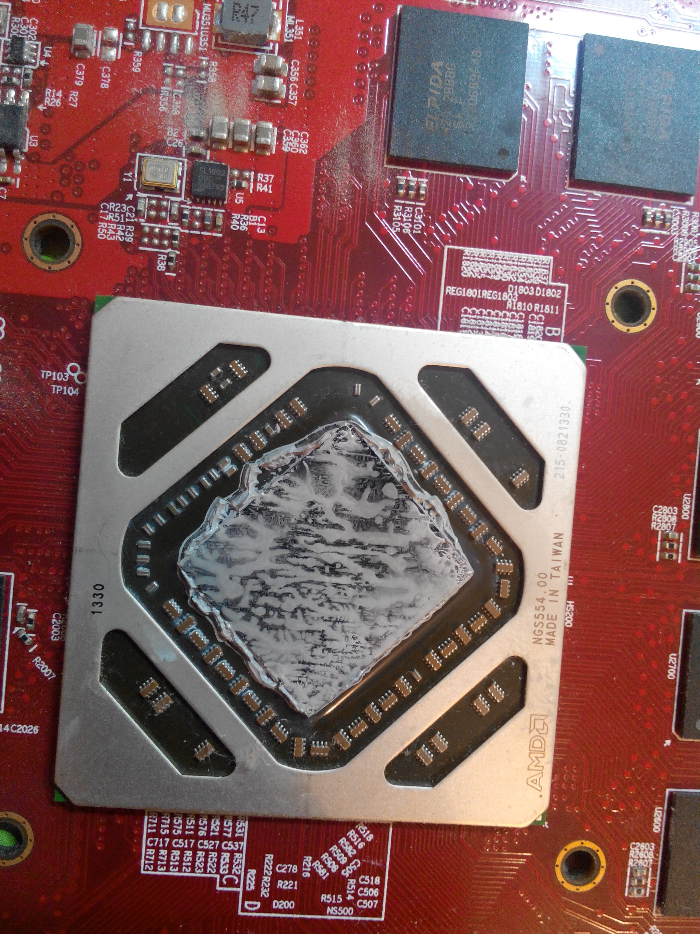 spaun_belНе понял , на чипе прокладка стояла ? Ппц , не вздумай повторять такое . По прочитанному понял что с прокладкой температура шкалила к сотне . По-нормальному когда ты сделал -85 , в конце 72-77 . Из чего делаю вывод что был перекос или хреновый контакт . Виновата скорее всего кривая СО от поверколора , у меня тоже так было , правда на 6930-й от пк , от степени затяжки винтов зависела температура Если хочется снизить температуру - делай андервольт и с корпусом что-то , он поди говенный Вот приобрел себе полутруп , СО правда там хорошая , но мх-4 и андервольт делают свое дело , также отсутствует корпус . В таких условиях карта трудится , если больше 50 градусов - карта вылетает (отвал чипа походу) http://www.image123.net/qpggdcxhc4thpic.html Дома кстати жара , градусов 30 . Короче удивляюсь я таким температурам как у тебя