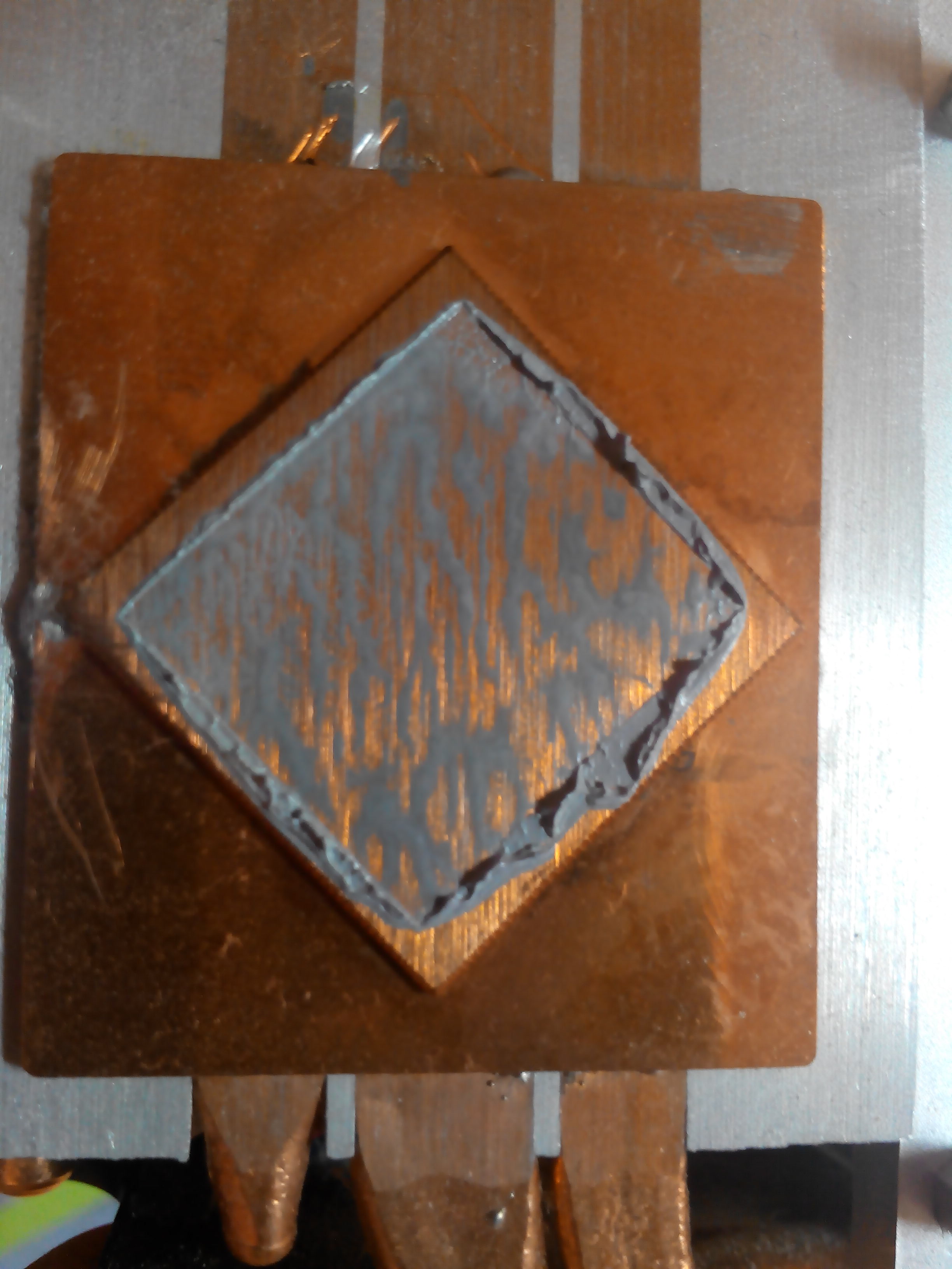 в первый раз намазал пасту ооочень тонко. Но видимо из-за того, что подошва СО не очень гладкая (совсем не гладкая), паста собралась в такие ручейки в микротрещинах
