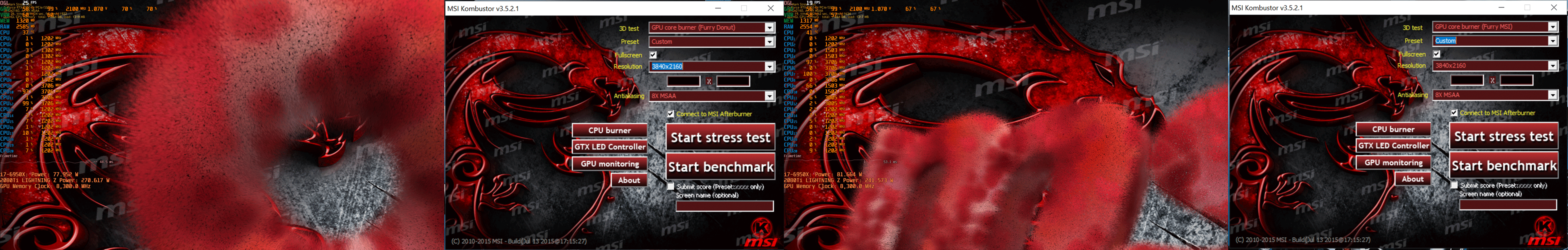 Что то приуныли после проверки разгона Комбастором то Больше нет любителей понтануться 2100 на постоянку. MSI Kombuster для GPU = Linx для CPU Быстро спускает с небес на землю. Предлагаю ввести статистику разгона на сайте для GPU так же как для процессоров (она еще есть, кстати?). Например 15-20 минут Комбастера с Donut-6500 и 15-20 минут с msi-01. Оба теста с артефакт-сканером естественно.
