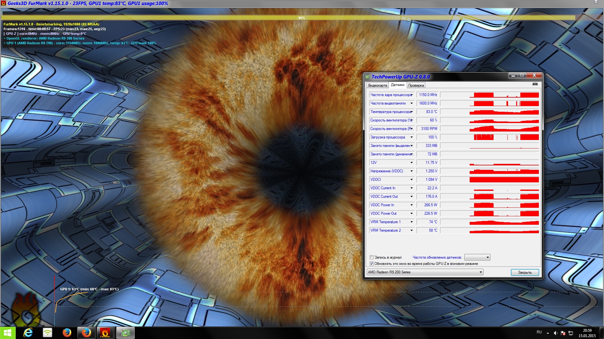 Бублик дает нереалистичную картину в принципе. Это стресс-тест, с очень агрессивным воздействием на карту, в разрезе той же напруги, например. Ну не даст такой нагрузки на ГПУ ни одна игра. Unigine Valley/Haven, Ryse, Metro LL, BF4 CQ Large 64, Unity, FC4, Watch Dogs гораздо более правдоподобную картину рисуют. Если там перегрева, последующего сброса частоты нет, артов, отвалов драйвера и ЧЭ нет - то можно играть. Только карту от пыли чистить иногда)