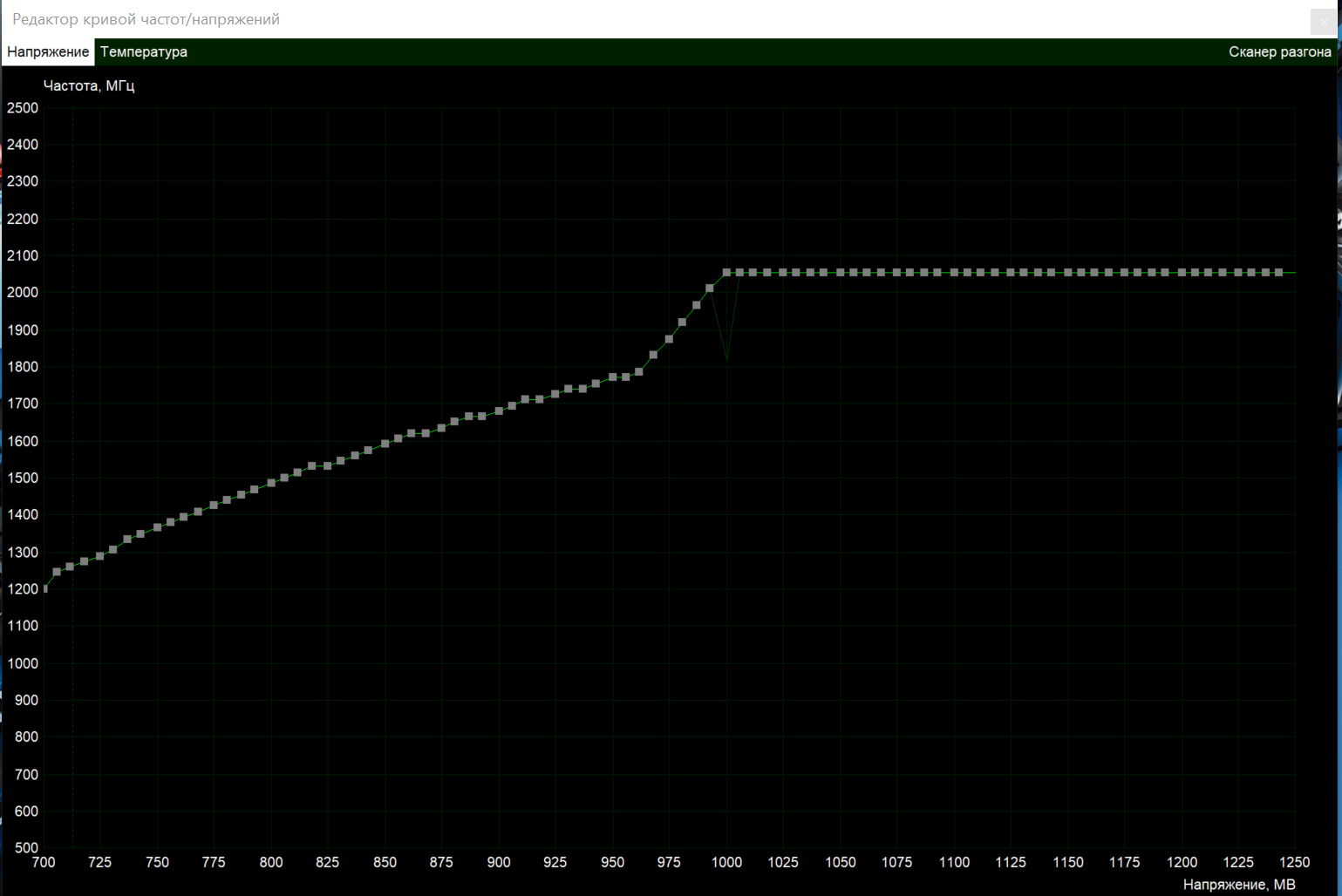 Да очень просто, выбираешь напряжение и поднимаешь к верху точку на выбранную частоту и нажимаешь применить. Тестируешь кривую, всё нормально-поднимаешь выше или опускаешь ниже и т.д. Будет выглядеть вот так. По памяти, добавляй сразу +1000 и дальше по +50.