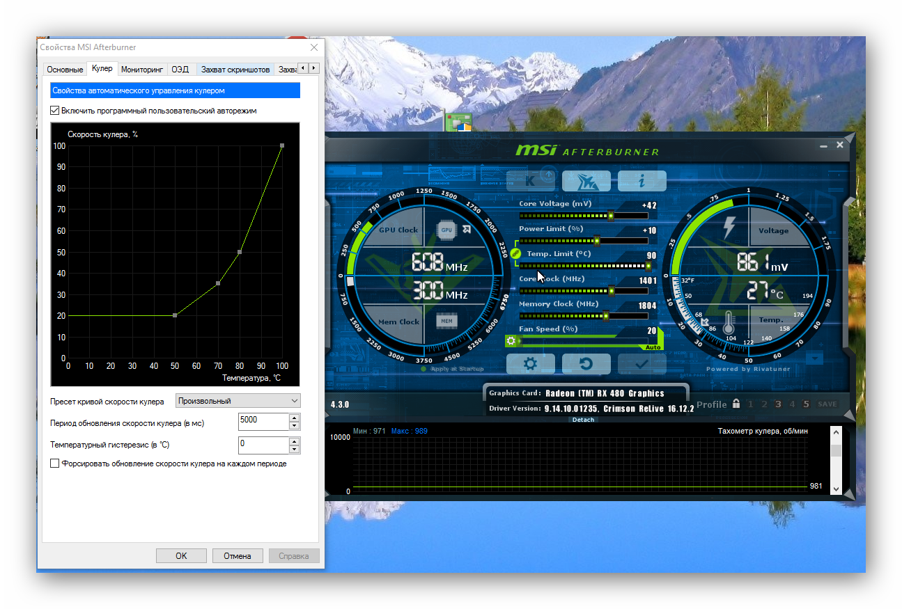 Q: Как сделать чтоб вертушки на ВК начали крутиться при 30-40 градусов, и плавно набирали обороты по мере нагрева? A: Использовать MSI Afterburner или Sapphire Trixx. Важно помнить, что нужно использовать только одну программу для разгона/регулировки карты.