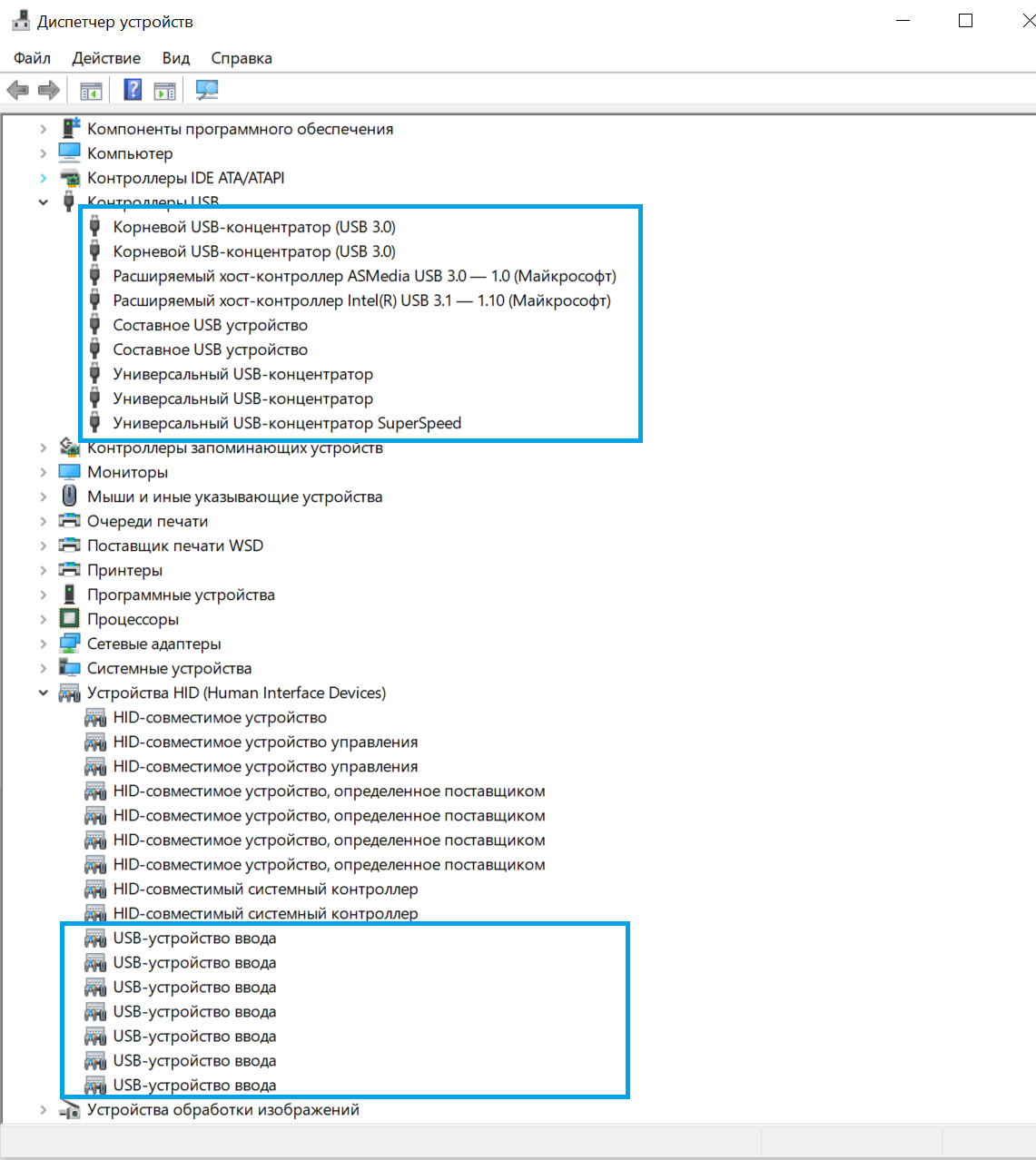 Обесточить комп полностью, выдернуть шнур из розетки, подождать пока контроллер в БП "обнулится", и подключить заново попробуйте. В диспетчере устройств все что связанно с USB надо отключить от энергосбережения + в настройках электропитания в Win.