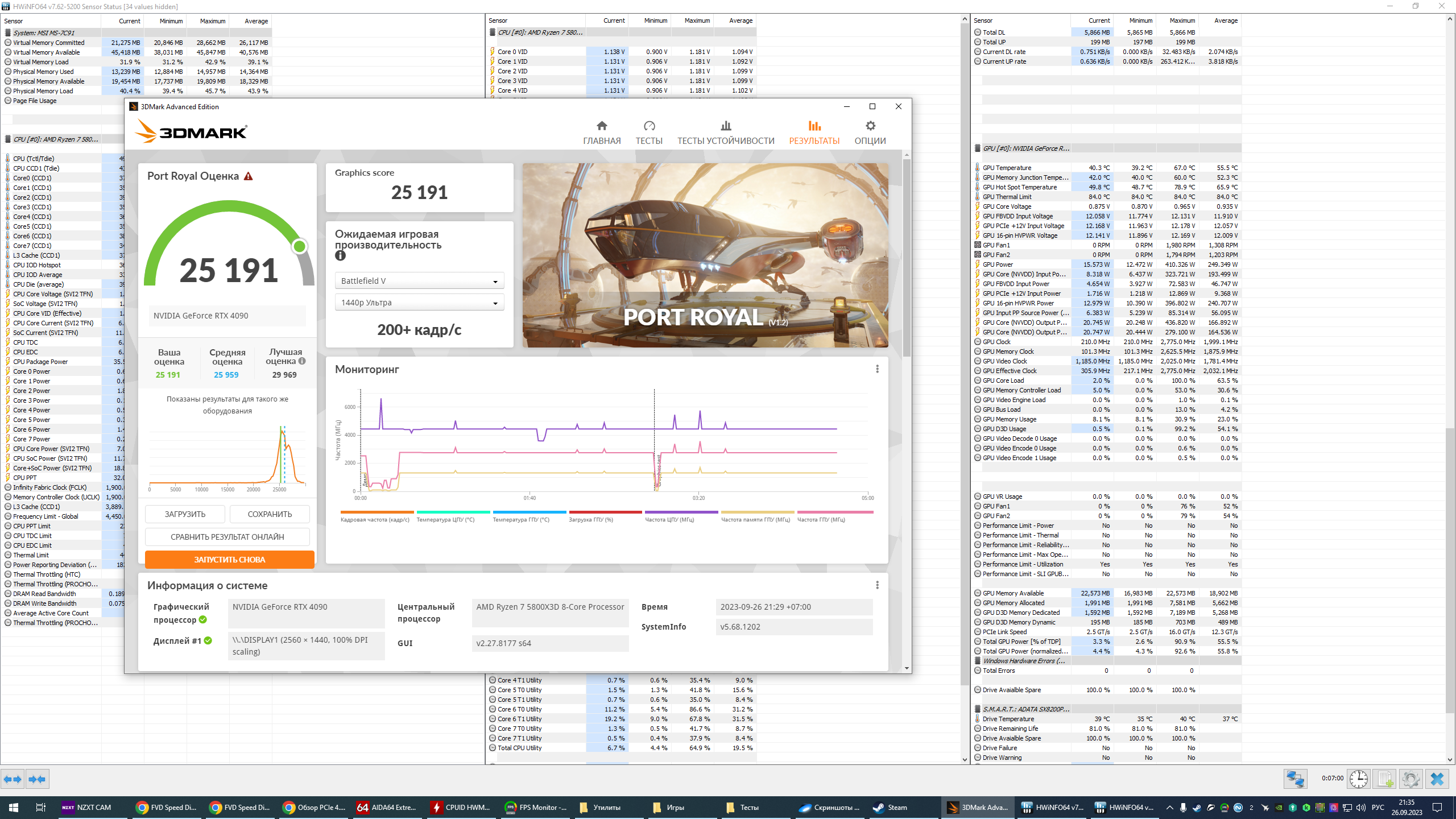 Действительно, температуры чип/хотспот подозрительно высокие. Память холоднее чипа на ~6С. У меня на такой же карте на воздухе при +190 по чипу и +900 по памяти, память горячее была всего на 2С. Похоже, с охладом что-то не так. Прогони в дефолте Port Royal с открытым корпусом.