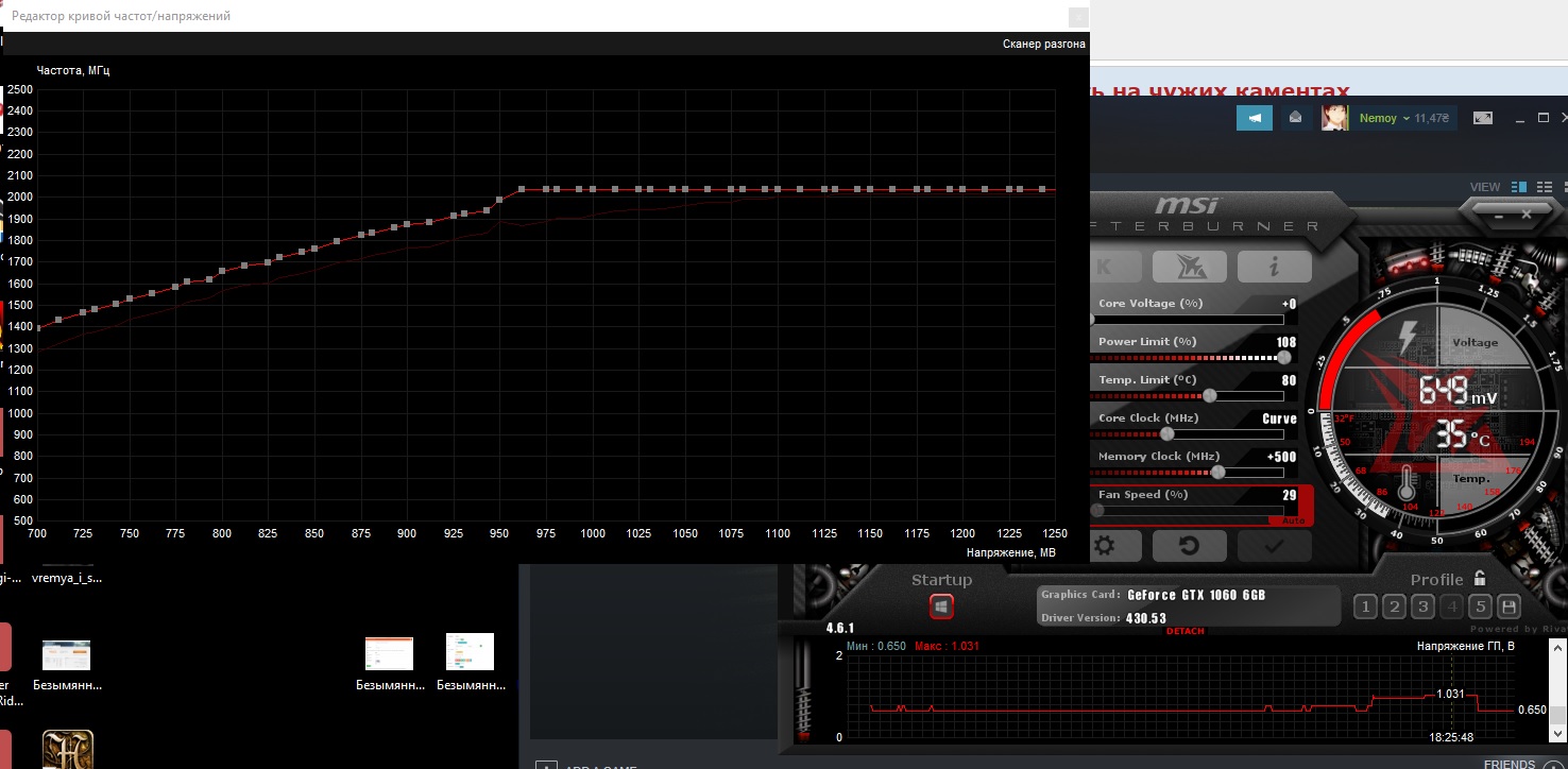 Ребята, ну я вот выставил эту кривую. По ней у меня 2025 частота и 0,962мВ. Но в ПАБГ этот вольтаж держится, но захожу в КС ГО и вольтаж повышается до 1,031. Это типа так должно быть?
