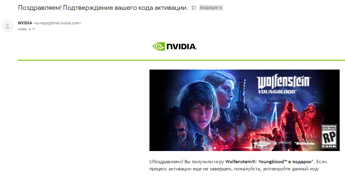 Вопрос немного не по теме: кто-нибудь Control / Wolfenstein по акции получал? Я зарегистрировался на сайте NVIDIA две недели назад, но до сих пор никакого ответа. Производитель Asus. Что делать?