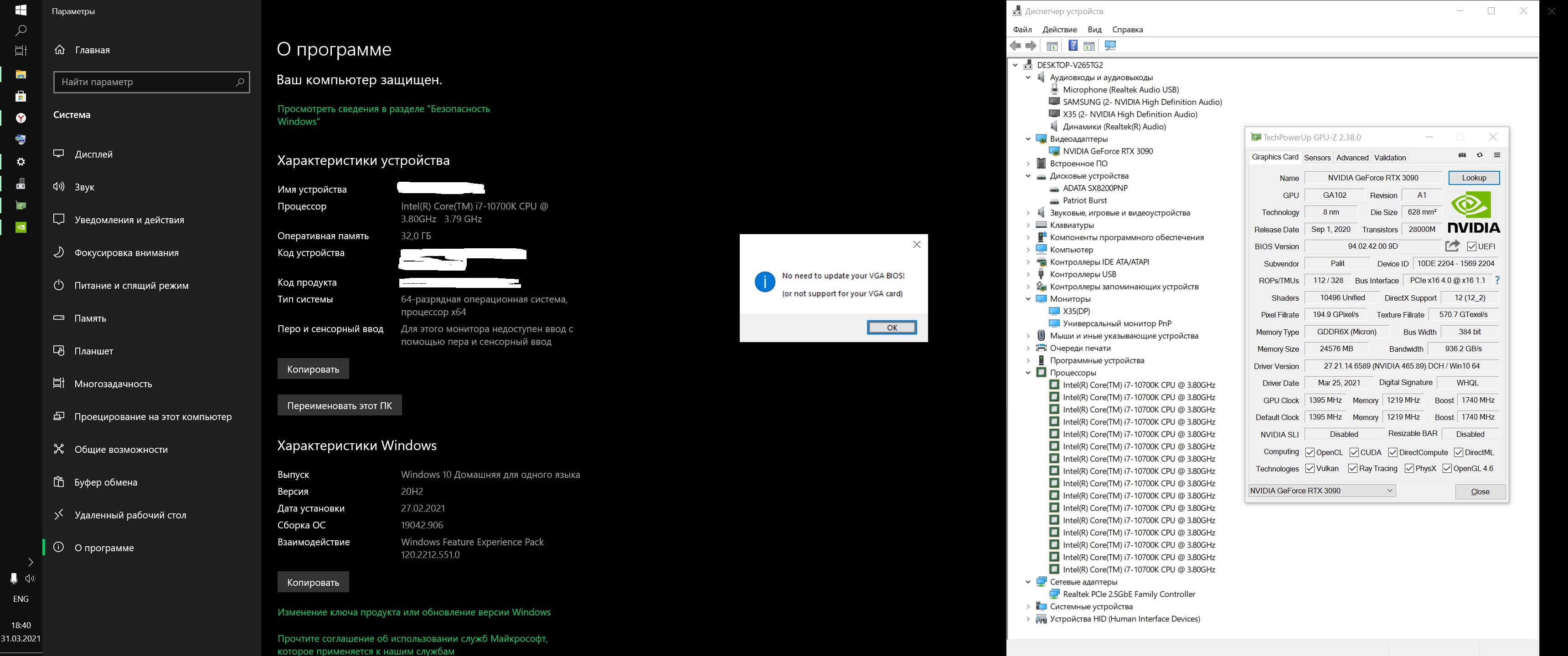 Palit support Не получается обновить ((((( Что не так? Написал в поддержку тоже - MSI UNIFY, 10700К, GeForce RTX™ 3090 GameRock - I attach a screenshot