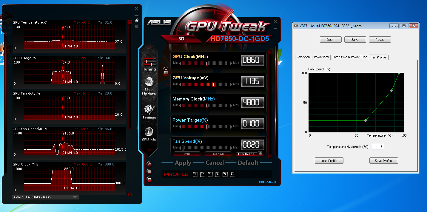 Помогите, знающие люди разогнать видеокарту для повышения фпс в играх, в частности в игре WoT, sapphire hd 7850 на 1gb, 256 bit частота ядра 900, частота памяти 1200. Инфу по характеристикам беру из программы GPU-Z и msi afterburner (скрин прилогаю1). Я пытаюсь стандартно через msi afterburner на максимум выставить значения: 1050 ядро, 1450 память , 1225 вольтаж (скрин2), смотрю через комбустер фпс не фига не поднимается все равно, да и при этих значениях все игры зависают и вылетают, что я делаю неправильно, помогите очень прошу люди, я вообще в этом не разбираюсь(((.